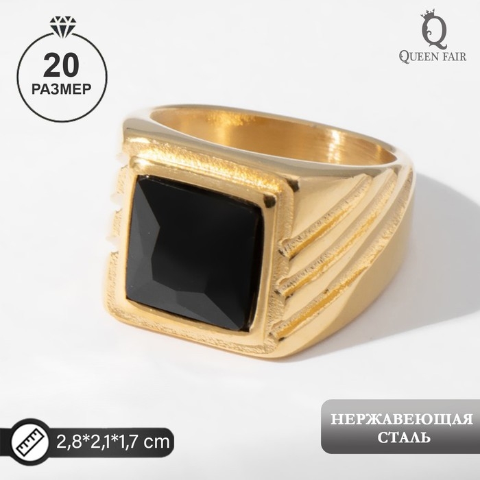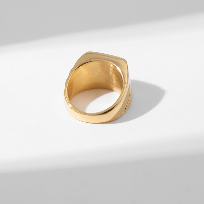 Кольцо мужское «Перстень» рельеф, цвет чёрный в золоте, 20 размер