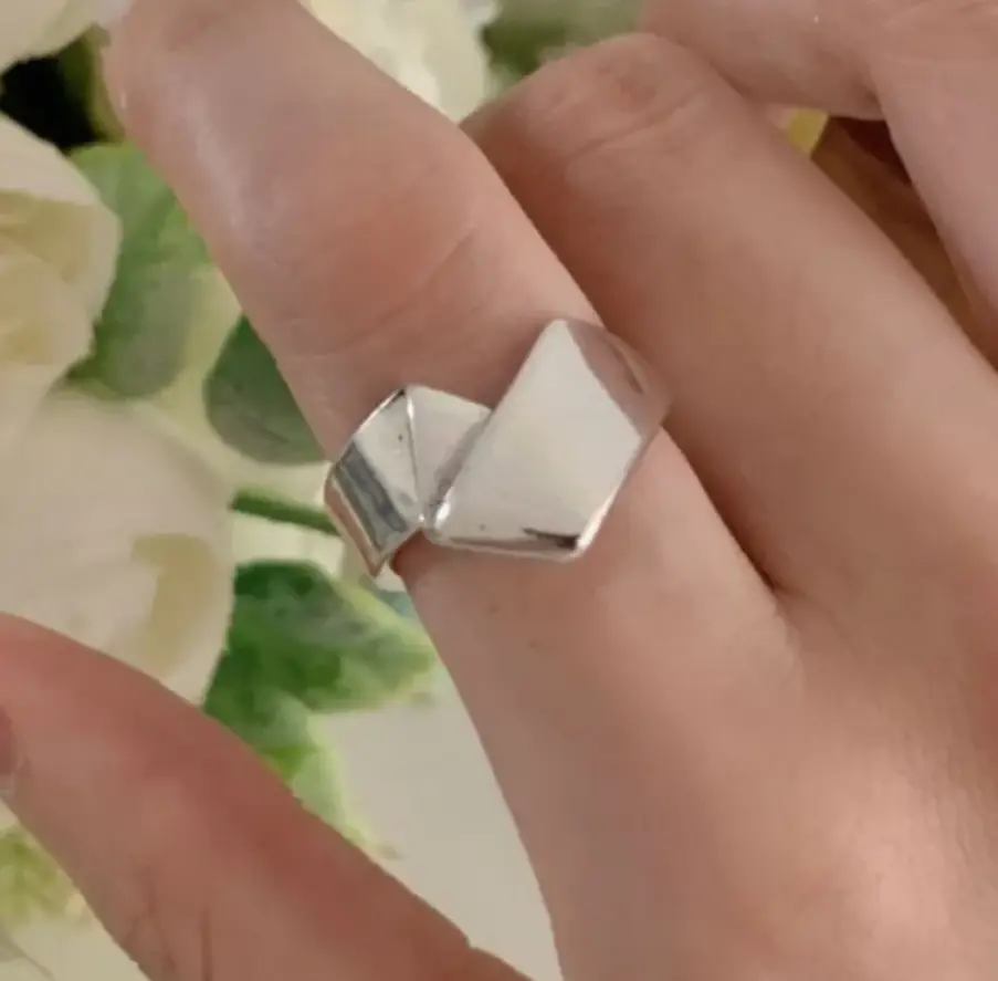 Кольцо Оригами Сердце металлическое серебристое