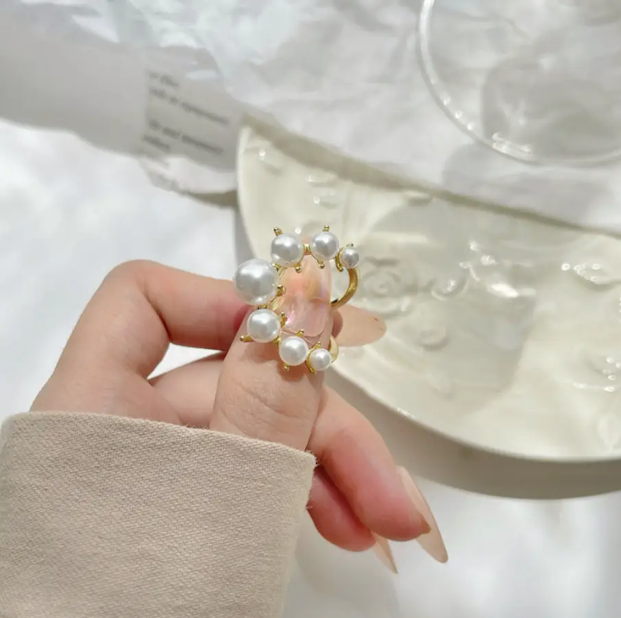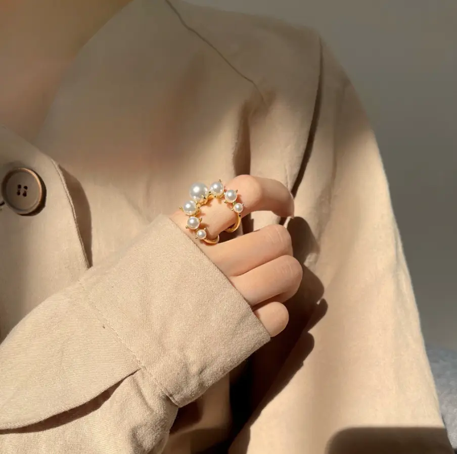Кольцо с жемчугом полукруг