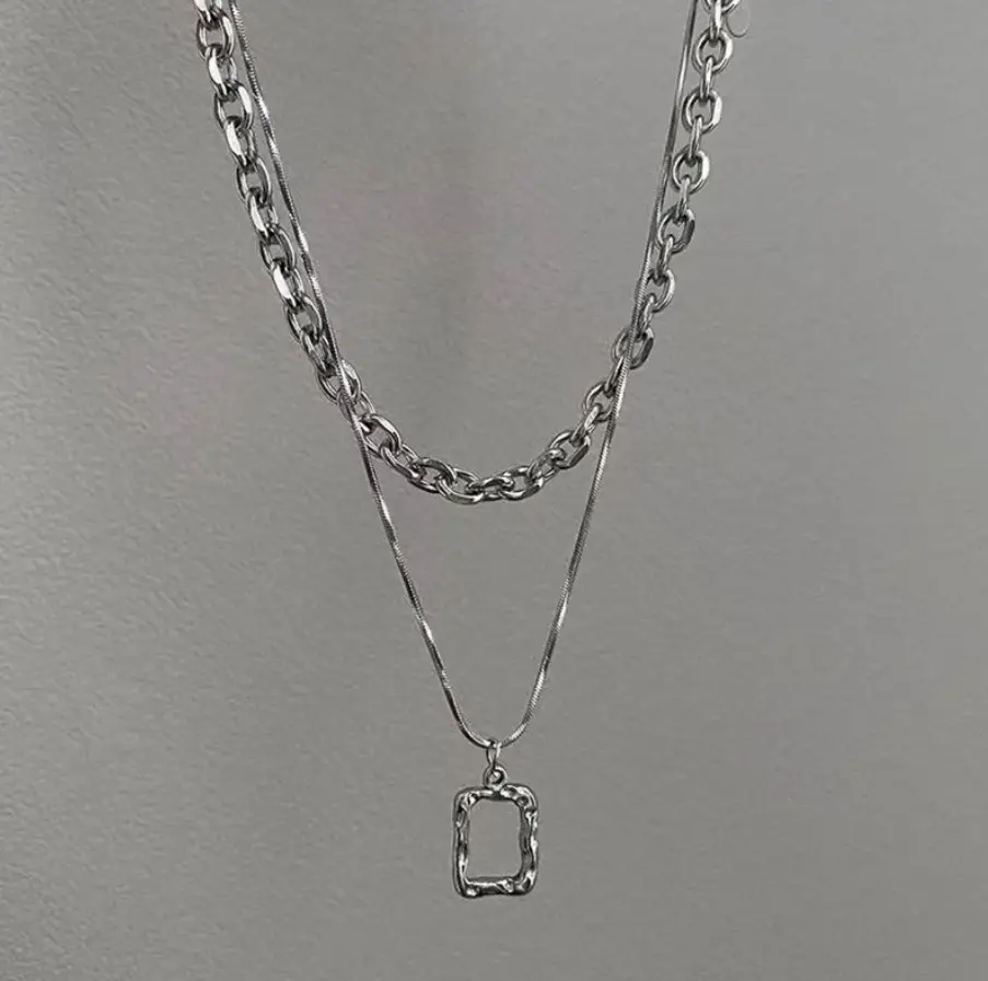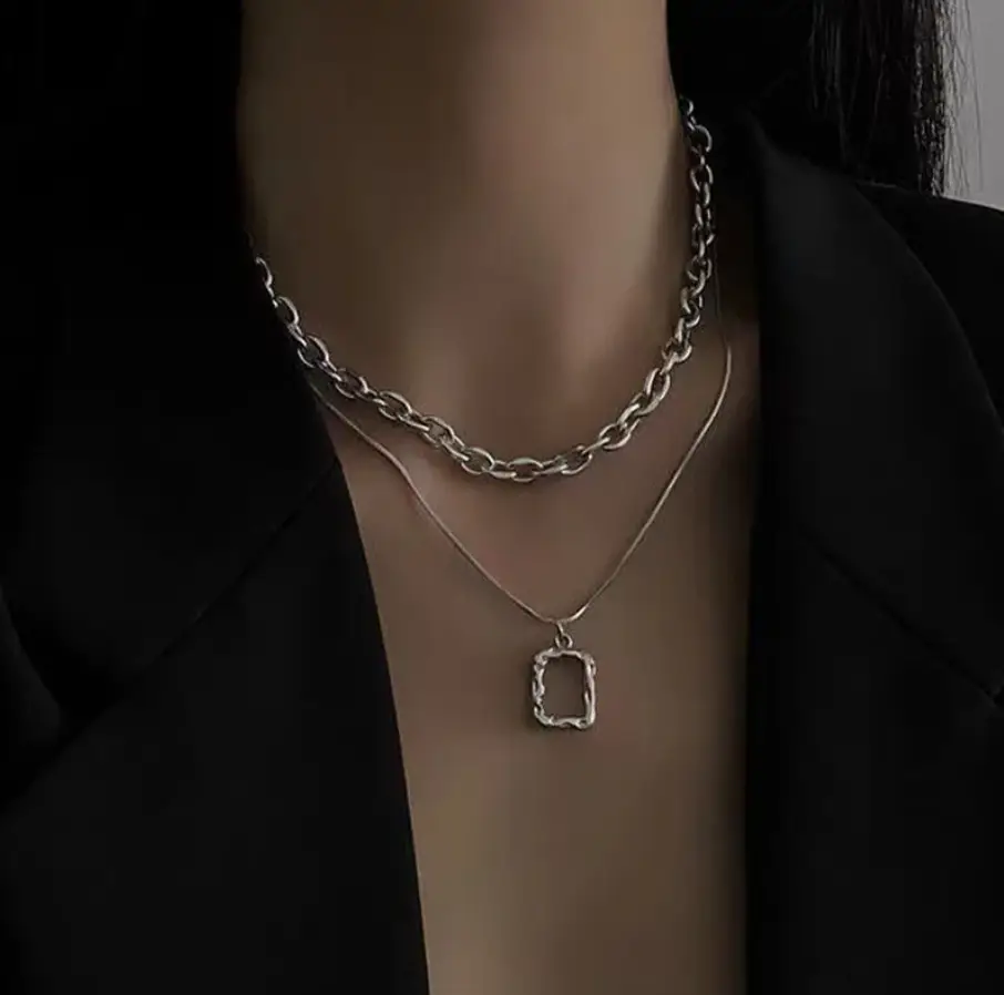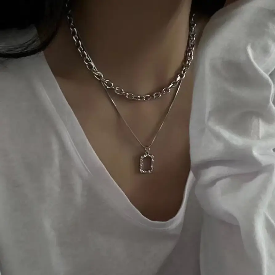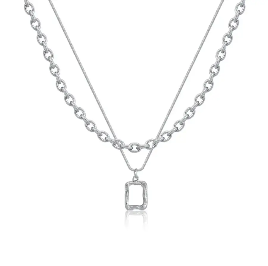 Колье на шею многослойное с подвеской серебристое
