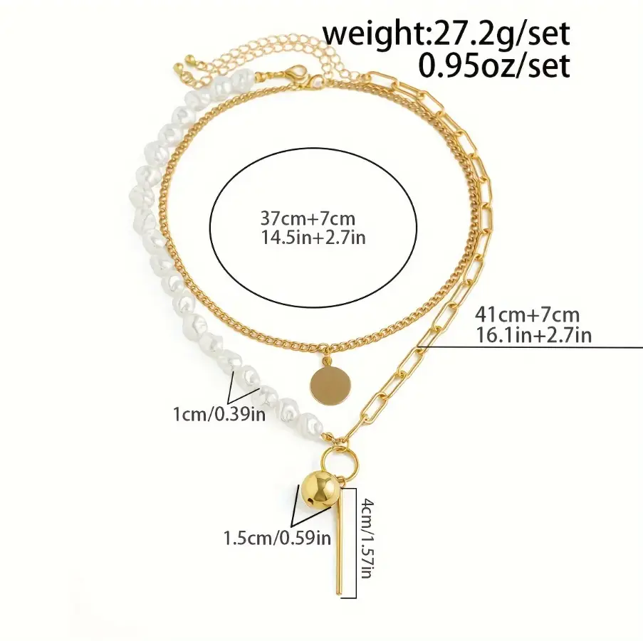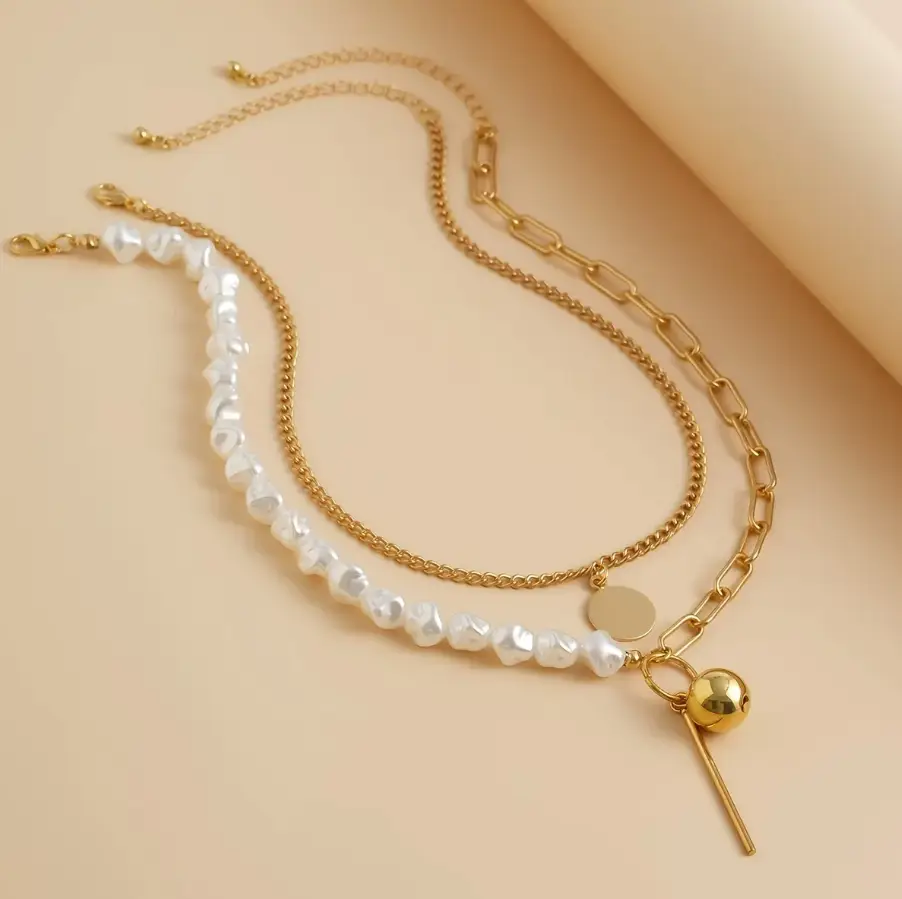Колье на шею с жемчугом и застежкой многослойное золотистое