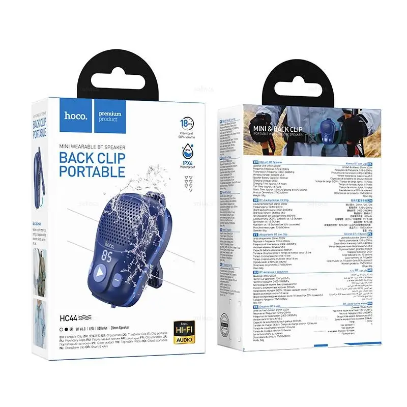 hoco HC44 - это мощная для своего размера, простая в использовании и надёжная колонка, которая позволяет наслаждаться музыкой практически везде, благодаря наличию зажима (с его помощью колонку можно прикрепить к рюкзаку, одежде и тд.).