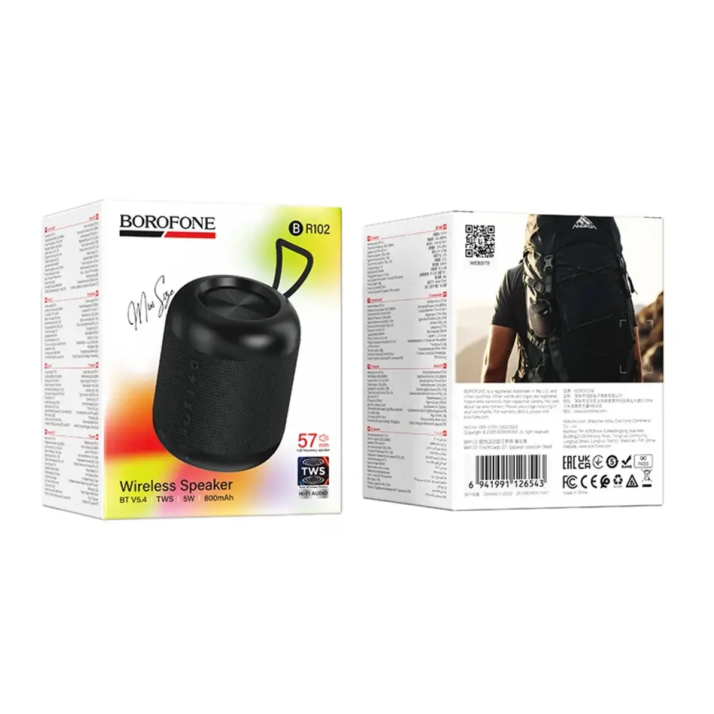 Borofone BR102 Gratificado — портативная беспроводная колонка с тканевым покрытием. Подходит для путешествий, занятий в тренажёрном зале или ежедневного использования.