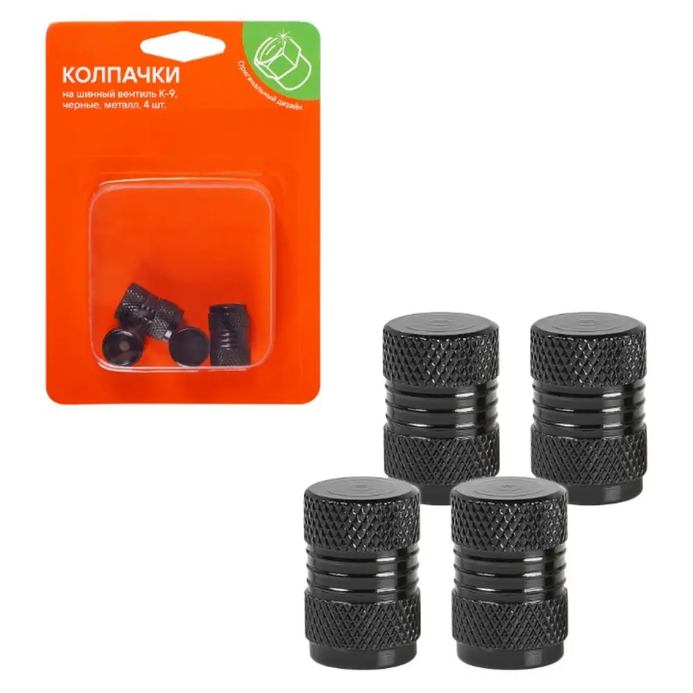 Колпачки на шинный вентиль K-9, черные, металл, 4 шт