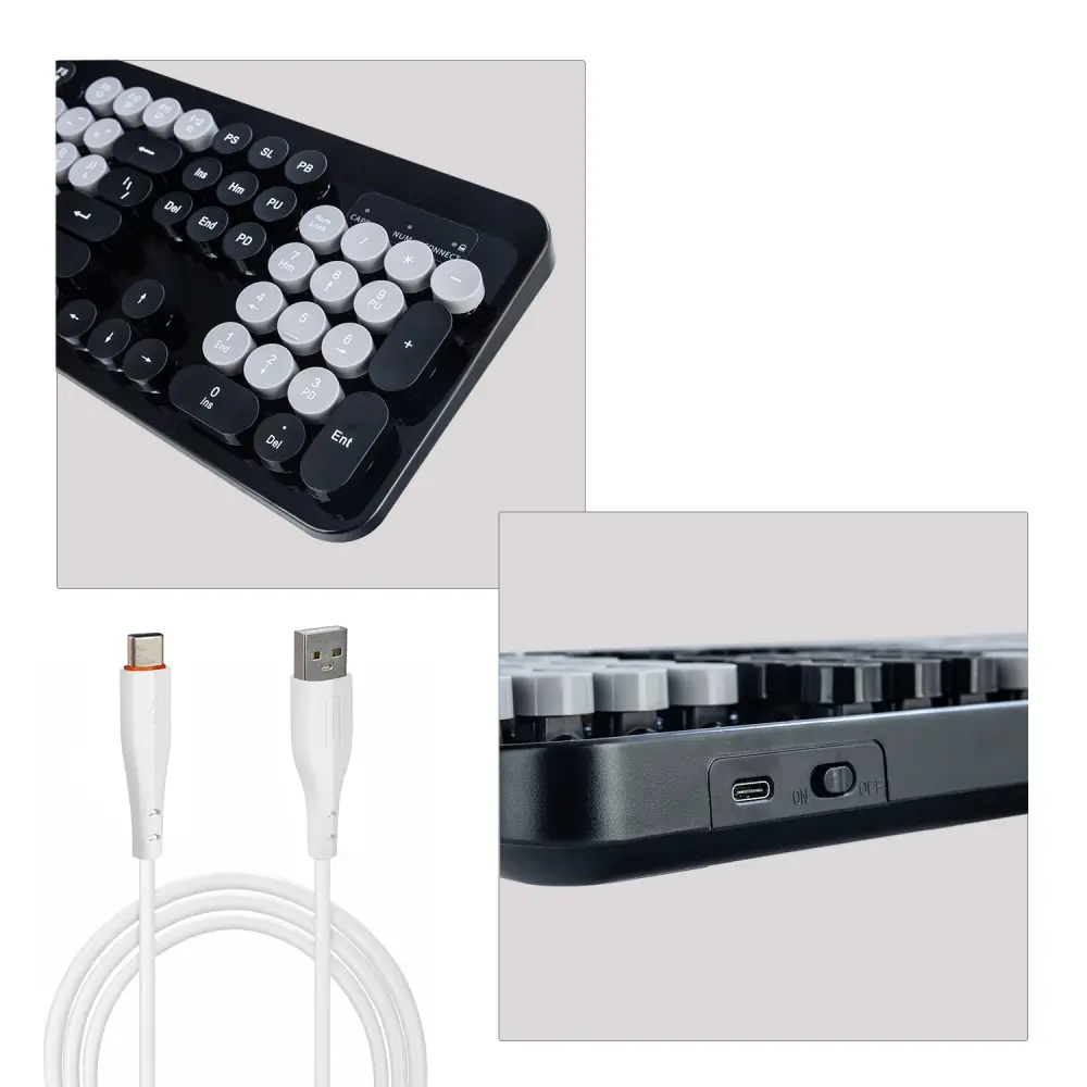 Комплект беспроводной клавиатуры и мыши ISA KB-09 в элегантном черно-сером исполнении предлагает два варианта подключения: через компактный USB-адаптер 2.4 ГГц, удобно расположенный в отсеке мыши, и по Bluetooth для максимальной мобильности. Оба устройства работают на перезаряжаемых аккумуляторах с современной зарядкой через USB-Type-C кабель, который входит в комплект. Клавиатура отличается стильным двухкомпонентным дизайном: матовый пластиковый корпус эффектно сочетается с глянцевой панелью, где расположены эргономичные закругленные кнопки, обеспечивающие комфортный набор. Комплект идеально подходит для работы и мультимедийного использования, объединяя в себе удобство беспроводного соединения, современный дизайн и практичность в повседневной эксплуатации.