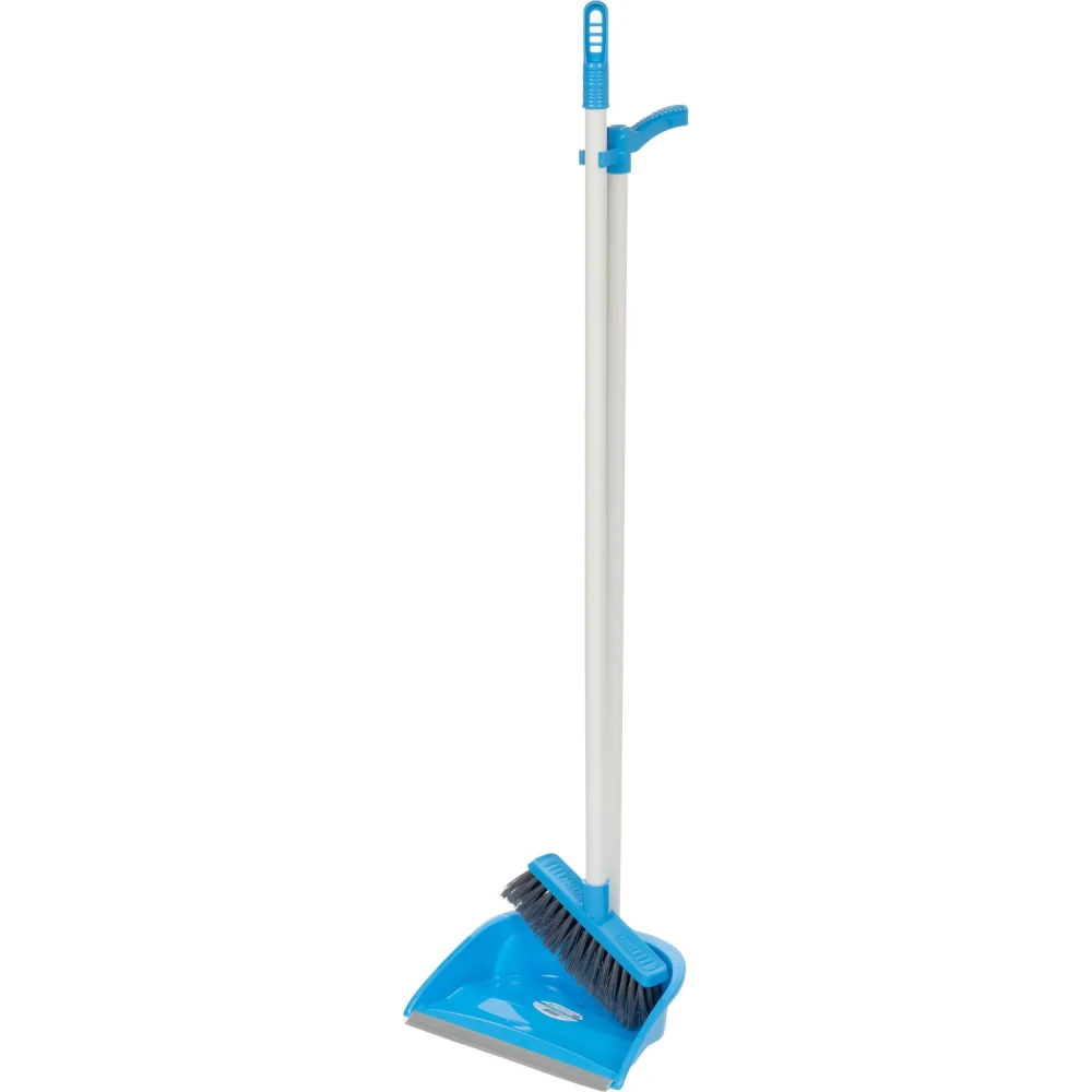 Комплект для уборки совок с щеткой для пола AF201-B, длинный ворс, синий