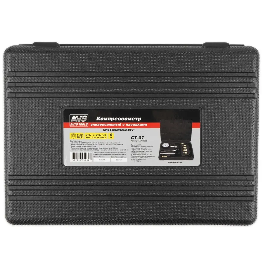 Компрессометр универсальный с насадками (8 предметов) AVS CT-07 (для бенз. ДВС)