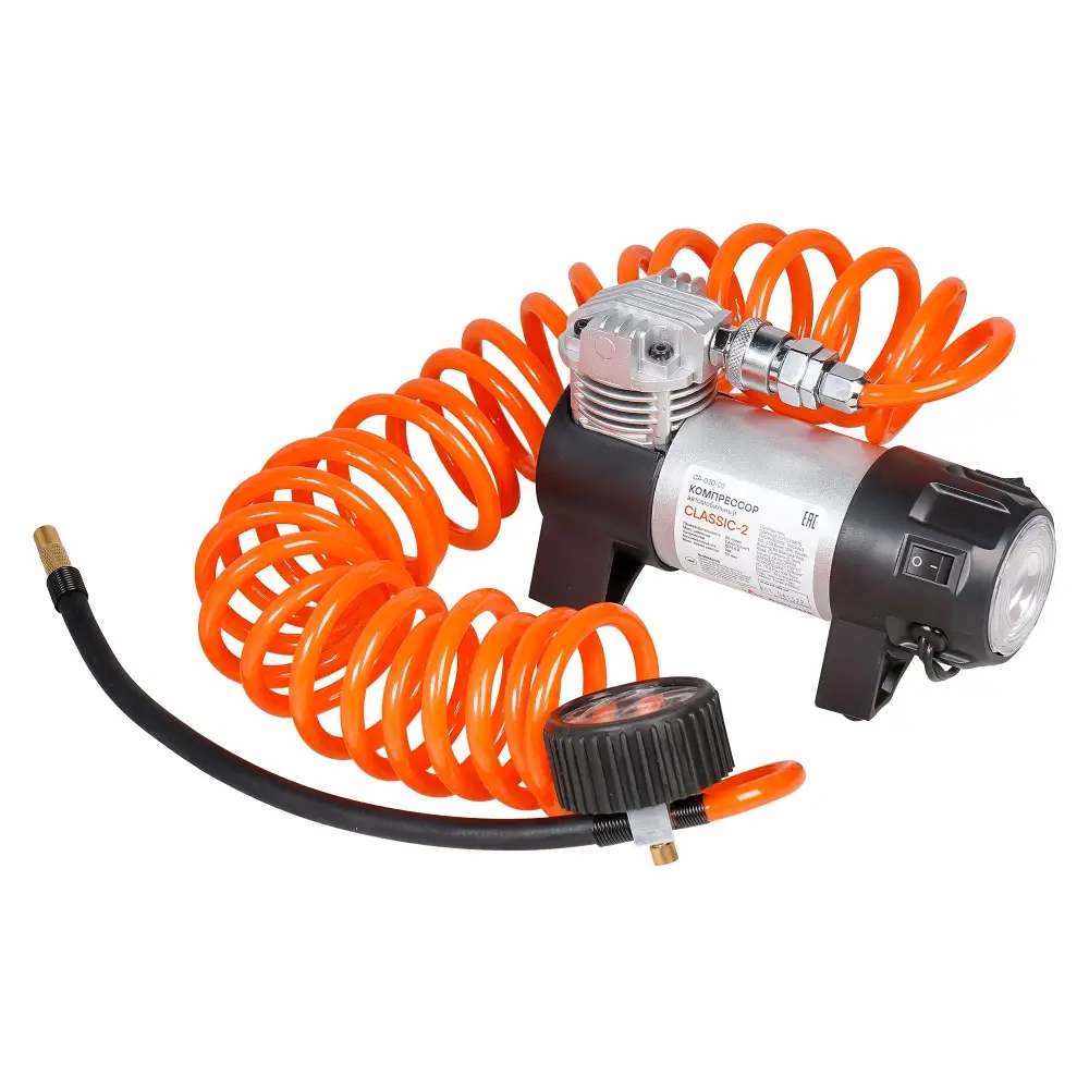 Компрессоры моделей STANDARD / CLASSIC-1 / CLASSIC-2 / PROFESSIONAL / EXPERT имеют одни из лучших показателей долговечности и отказоустойчивости в мире среди бытовых автомобильных компрессоров. Благодаря тефлоновым уплотнительным кольцам и разработанной нашими инженерами системой охлаждения, компрессор способен работать без остановки до 1 часа. Ресурсный срок его жизни в 3 раза превышает срок жизни стандартных компрессоров. Все компрессора имеют дополнительные насадки и сумки для хранения. Механизмы полностью металлические. CLASSIC-1 / CLASSIC-2 / PROFESSIONAL / EXPERT имеют встроенный светодиодный фонарь, который сделает более комфортным накачивание колеса в темное время суток. В моделях CLASSIC-2 / PROFESSIONAL / EXPERT - фосфорный манометр, который позволяет считывать показания даже в темное время суток. Так же эти модели комплектуются съемным манометром со шлангом-гармошкой длиной 5 м., который работает, как независимый манометр. Вам не нужно доставать весь компрессор, вы можете воспользоваться шлангом-гармошкой с манометром, замерить давление и принять решение - нужно вам накачивать колеса или нет. Под манометром располагается клапан сброса давления, с помощью которого вы можете выпустить лишний воздух из колеса. Все компрессора работают от прикуривателя автомобиля, кроме компрессора EXPERT - у него самый мощный двигатель и он требует подключения непосредственно к аккумулятору автомобиля