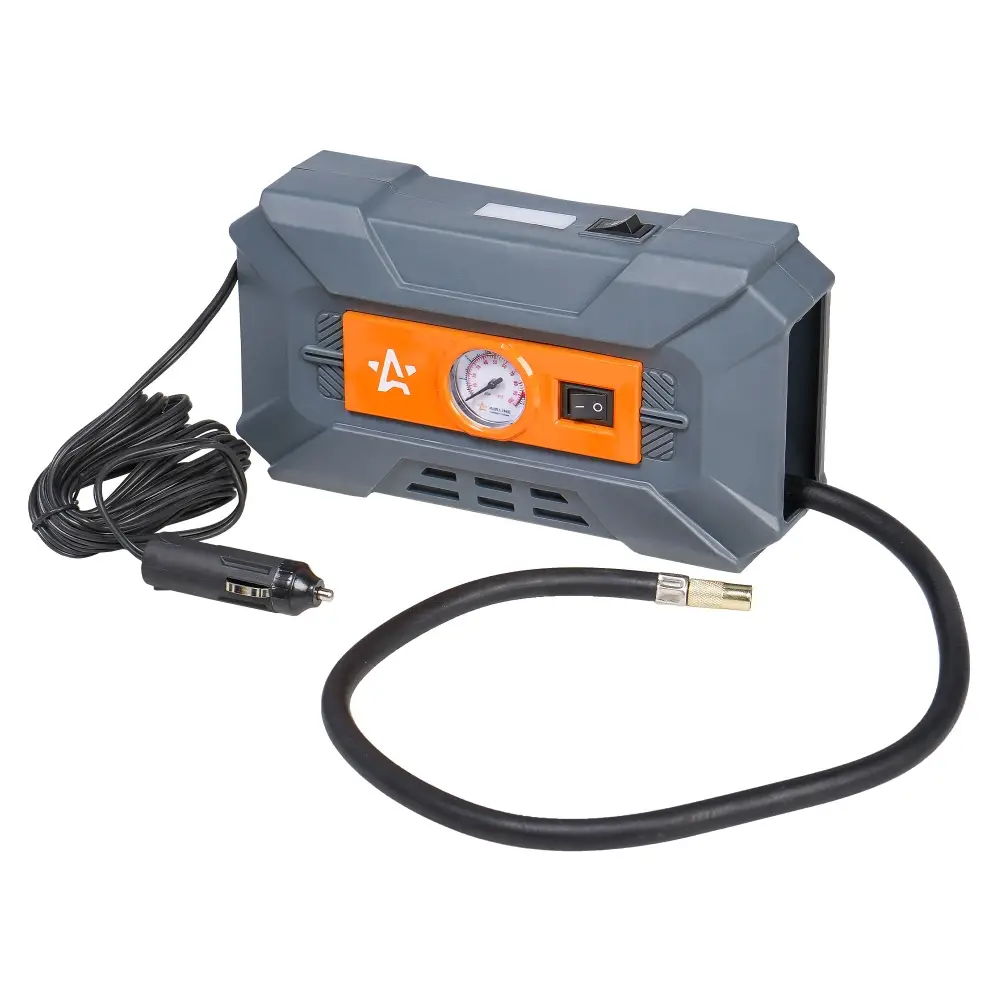 Автомобильный компрессор предназначен для получения сжатого воздуха в дорожных условиях. Компрессор модели MASTER L имеет встроенный фонарик и производительностью до 22 л/мин с максимальным давлением 7 Атм (кг/см2). В данном компрессоре используется конструкция с плавающим шатуном, что увеличивает ресурс работы в 2-3 раза, по сравнению с более мощными "металлическими компрессорами". Время накачивания полностью спущенного колеса R14 до 2 Атм не превысит 4 минут. В комплекте 2 насадки, шланг удобно прячется в корпус изделия. Компрессор можно хранить в фирменной сумке, которая так же идет в комплекте.
