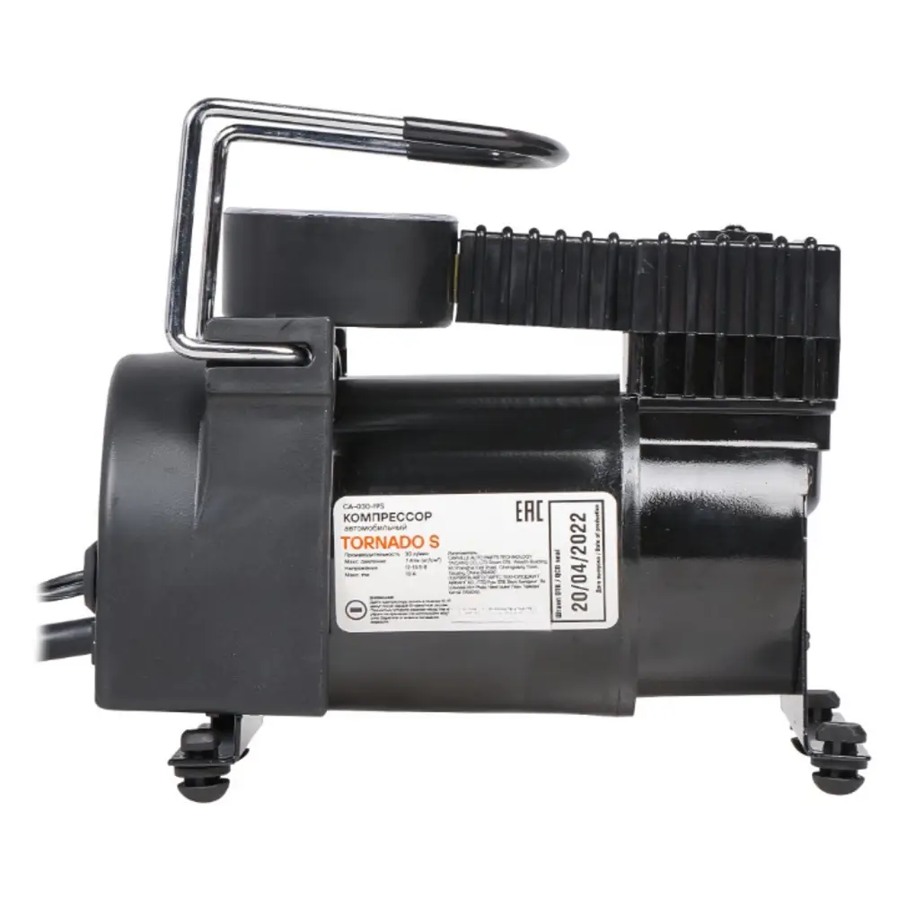 Автомобильный компрессор предназначен для получения сжатого воздуха в дорожных условиях. Компрессор модели TORNADO S имеет производительность до 30 л/мин с максимальным давлением 7 Атм (кг/см2). В данном компрессоре используется конструкция с плавающим шатуном, что увеличивает ресурс работы в 2-3 раза, по сравнению с более мощными "металлическими компрессорами". Время накачивания полностью спущенного колеса R14 до 2 Атм не превысит 4 минут. В комплекте 3 насадки.