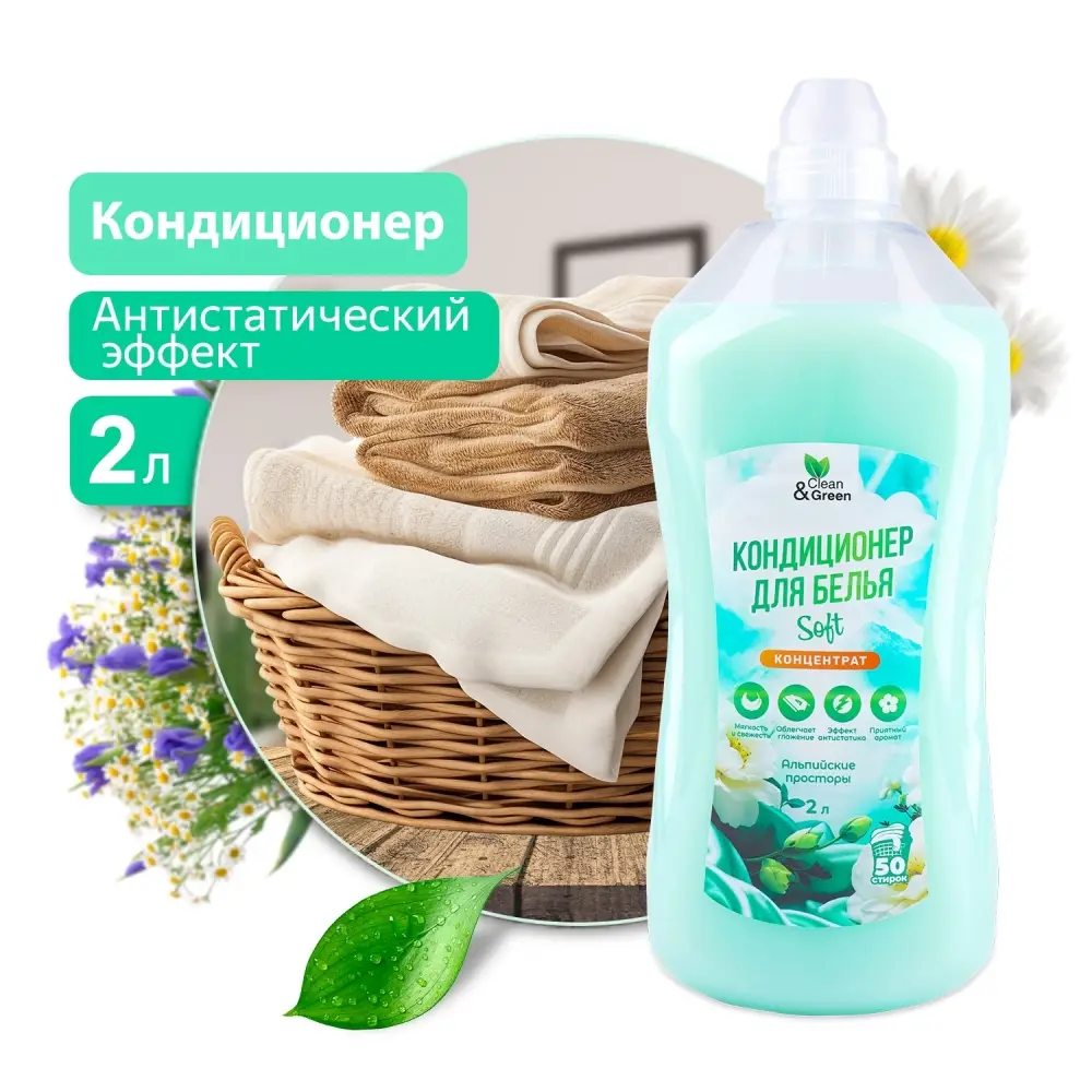 Кондиционер для белья Soft "Альпийские просторы" (концентрат, зелёный) 2 л. Clean&Green CG8364
