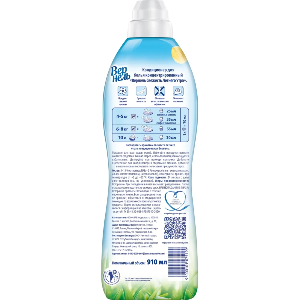 Кондиционер для белья Вернель Свежесть летнего утра 910мл