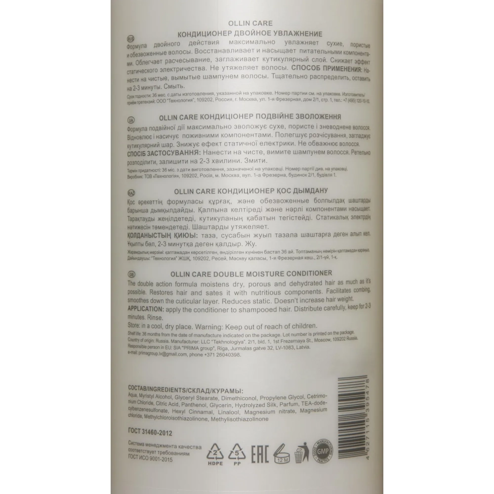 Кондиционер двойное увлажнение OLLIN CARE 1000мл