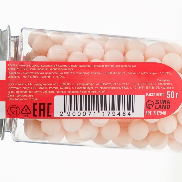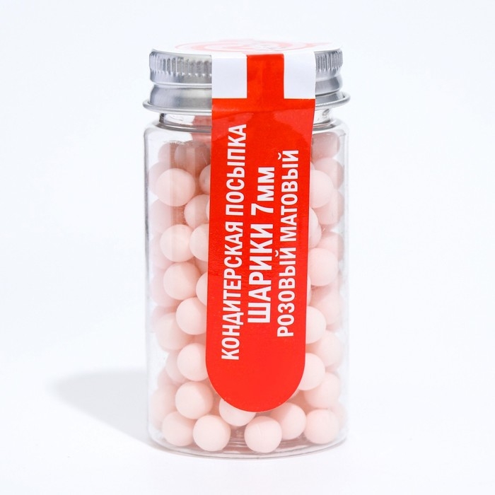 Кондитерская посыпка шарики 7 мм, розовый матовый, 50 г