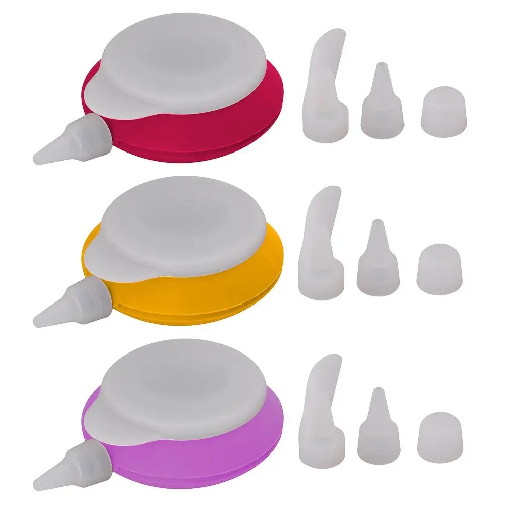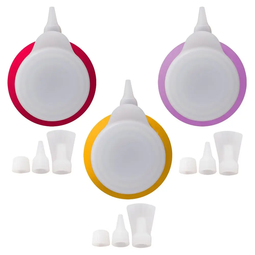 Декоратор предназначен для приготовления и декорирования выпечки, кондитерский изделий. Использование насадок различного размера позволит получить желаемую толщину выдавливаемого крема. Также с использованием декоратора можно изготовить декоративные украшения из шоколадной глазури. Крышечка для декоратора поможет хранить некоторое время в холодильнике остатки крема. В комплект входит емкость для крема и 3 насадки. Изготовлено из силикона. Размер 10х9см, высота 4см. Объем 100 мл.