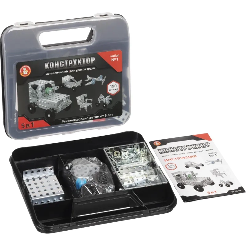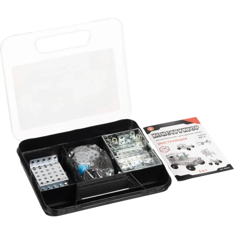 Конструктор металлический для уроков труда 5в1 №1 в пласт.чемоданчике,02454