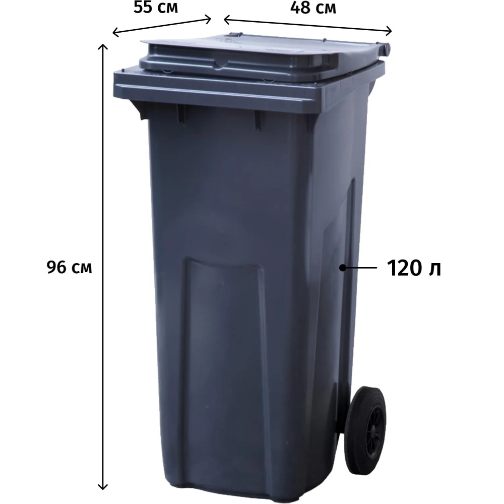 Контейнер-бак мусорный 120л, на 2-х колёсах, с крышкой, серый_28559