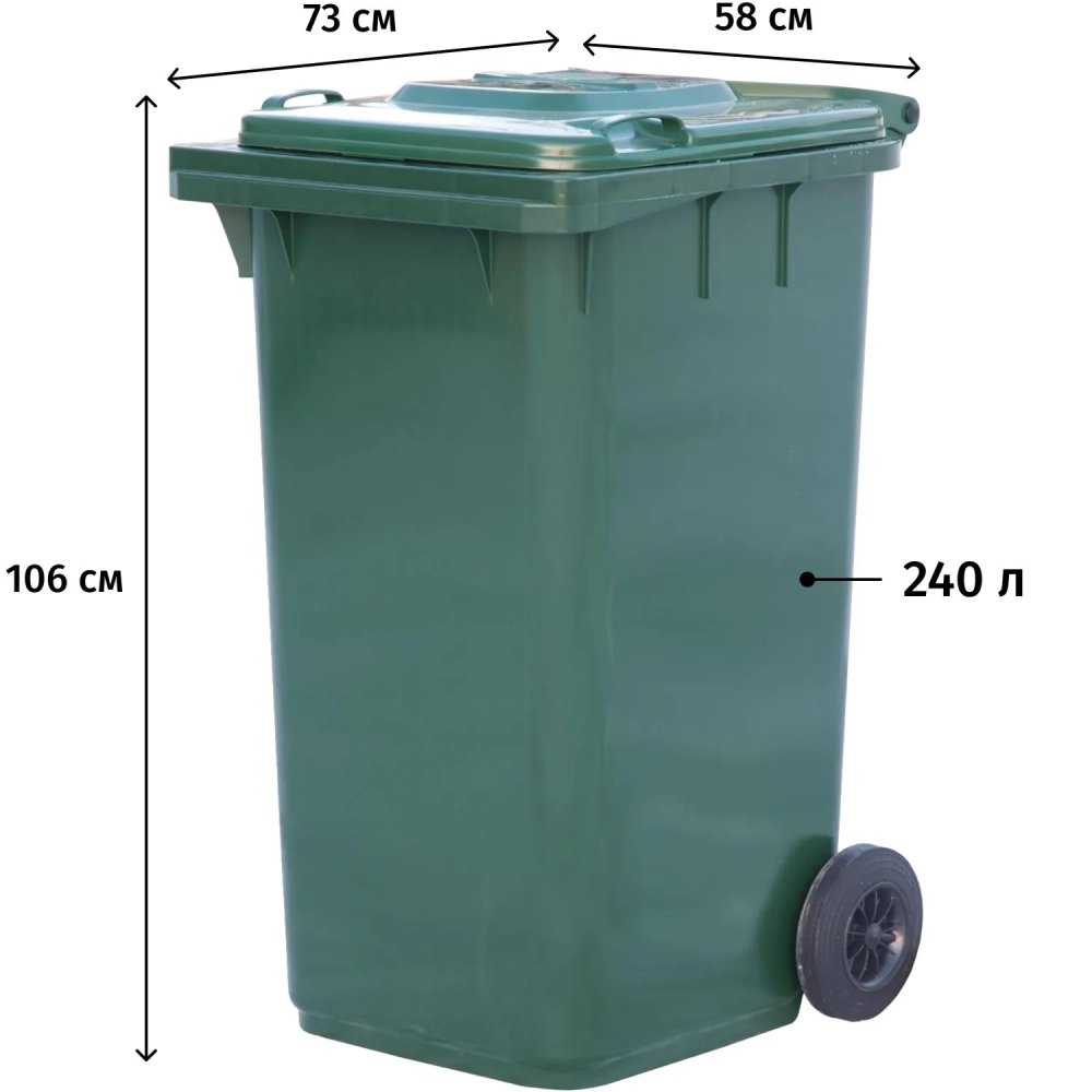 Контейнер-бак мусорный 240л, на 2-х колёсах, с крышкой, зеленый_28560