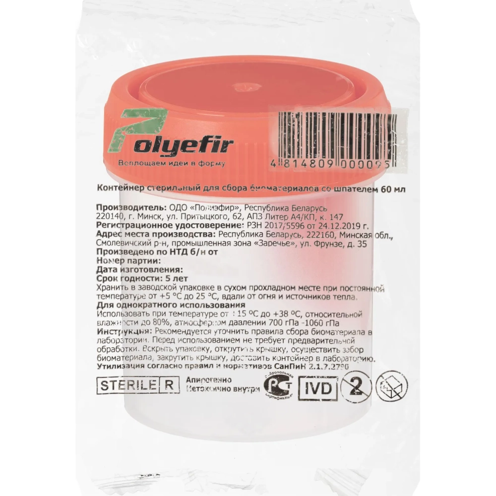 Контейнер д/сб биом 60 мл со шпател, Полиэфир инд.уп, стерильный 250 шт/уп
