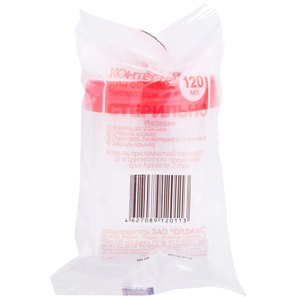 Контейнер д/сбора биопроб 120 мл стерил, 340 шт/уп ОЛДАНС