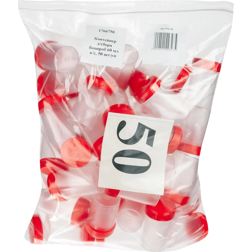 Контейнер д/сбора биопроб 60 мл н/с, 50 шт/уп ЕВРОКЭП
