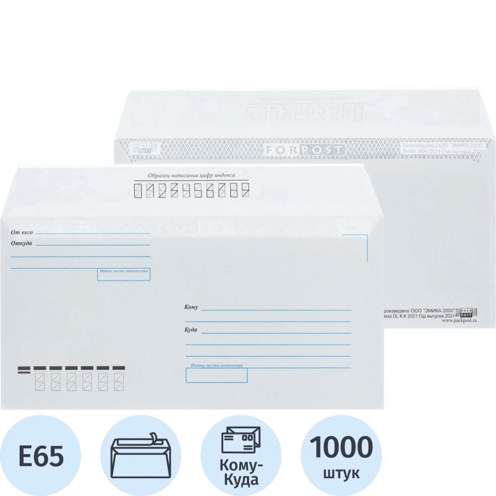 Конверт Куда-Кому E65 стрип ForPost 110х220 1000шт/кор 1804