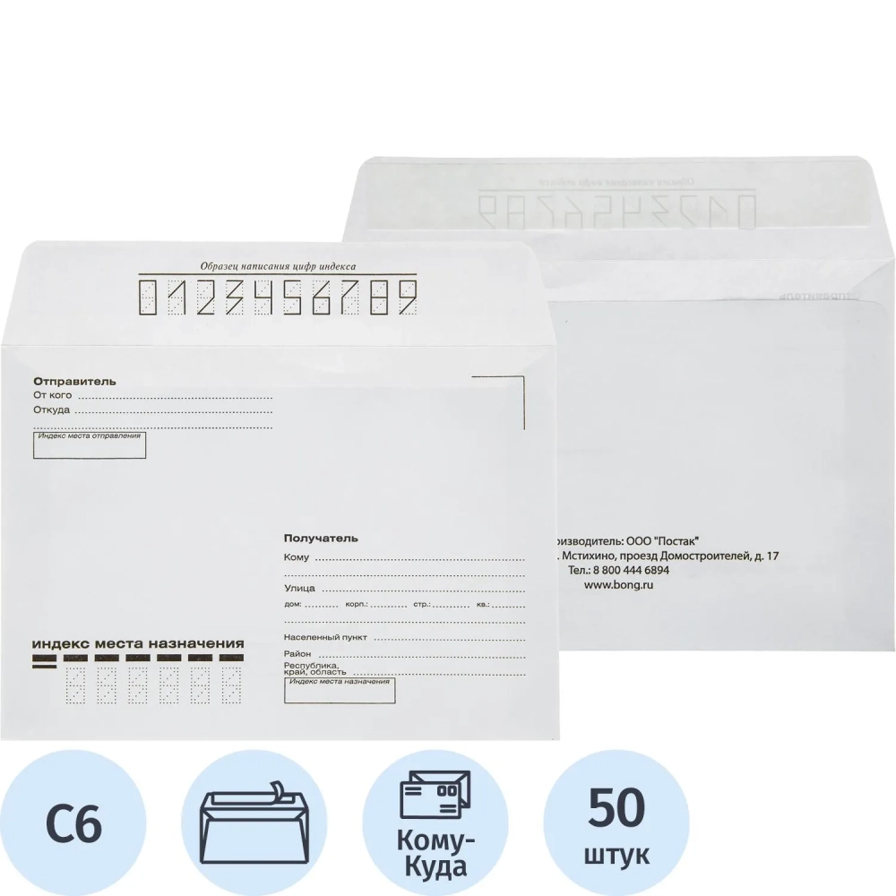 Конверт Куда-Кому С6 стрип 80 гр 114х162 50шт/уп