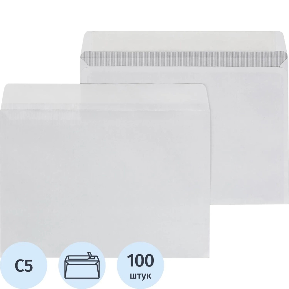 Конверт С5 ECOPOST белый стрип 162х229 с вн. зап. 80г бел.92-100% 100шт/уп
