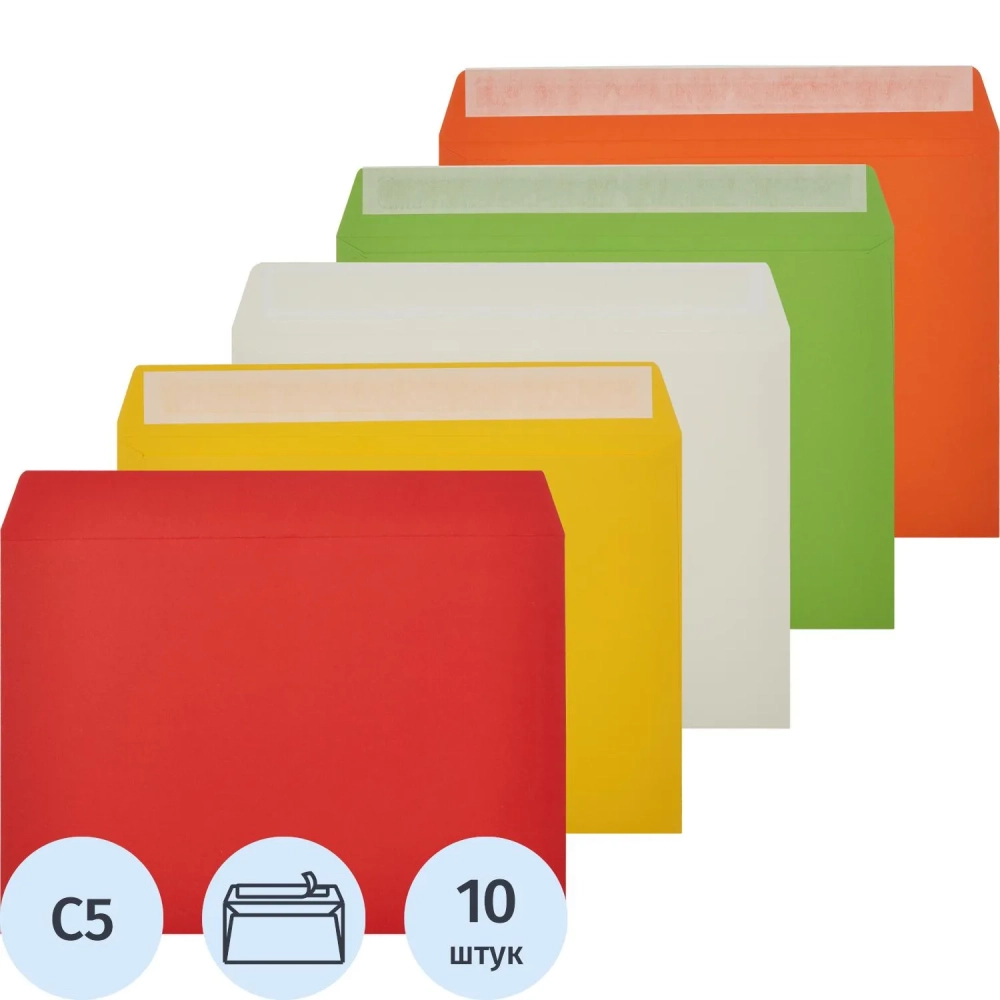 Конверт С5 из цв.бум, 120г/м2,с отрыв.лентой, 5в/10шт. уп