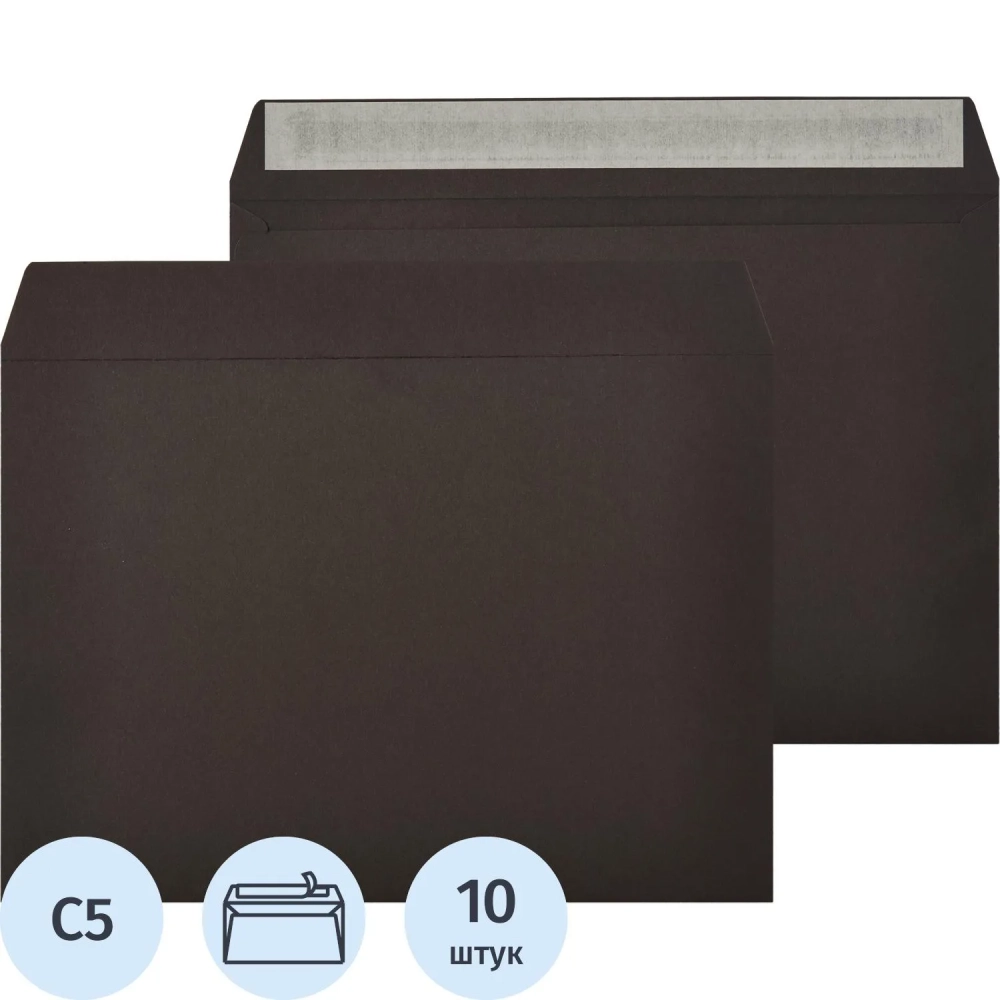 Конверт С5 из цв.бум,120г/м2 с отрыв.лентой ,черный,10 шт./уп