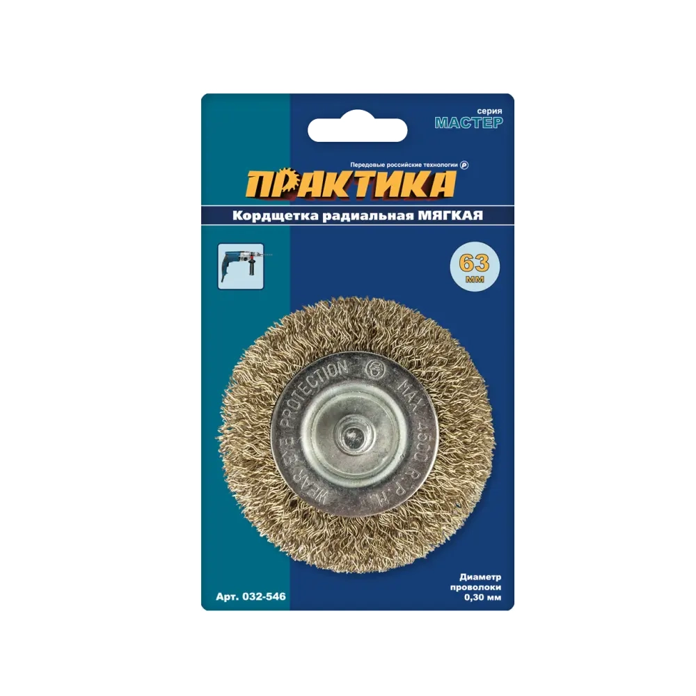 Кордщетка для дрели радиальная мягкая 63 мм, Практика 032-546
