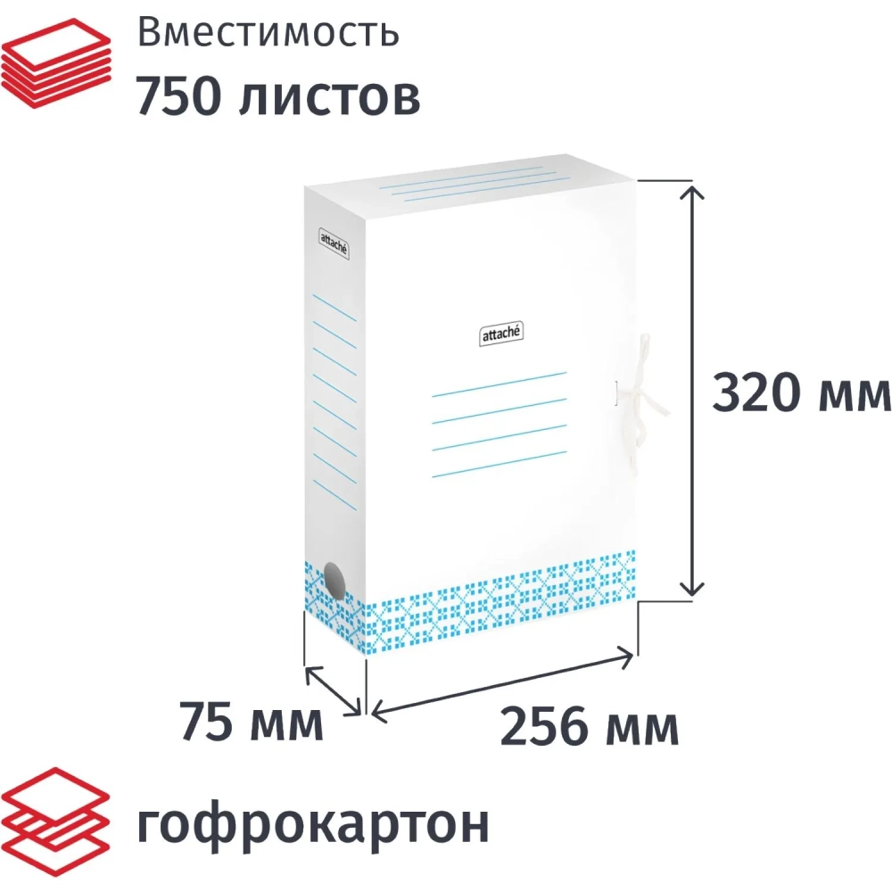 Короб архивный Attache 75мм на завязках голубой с узорами
