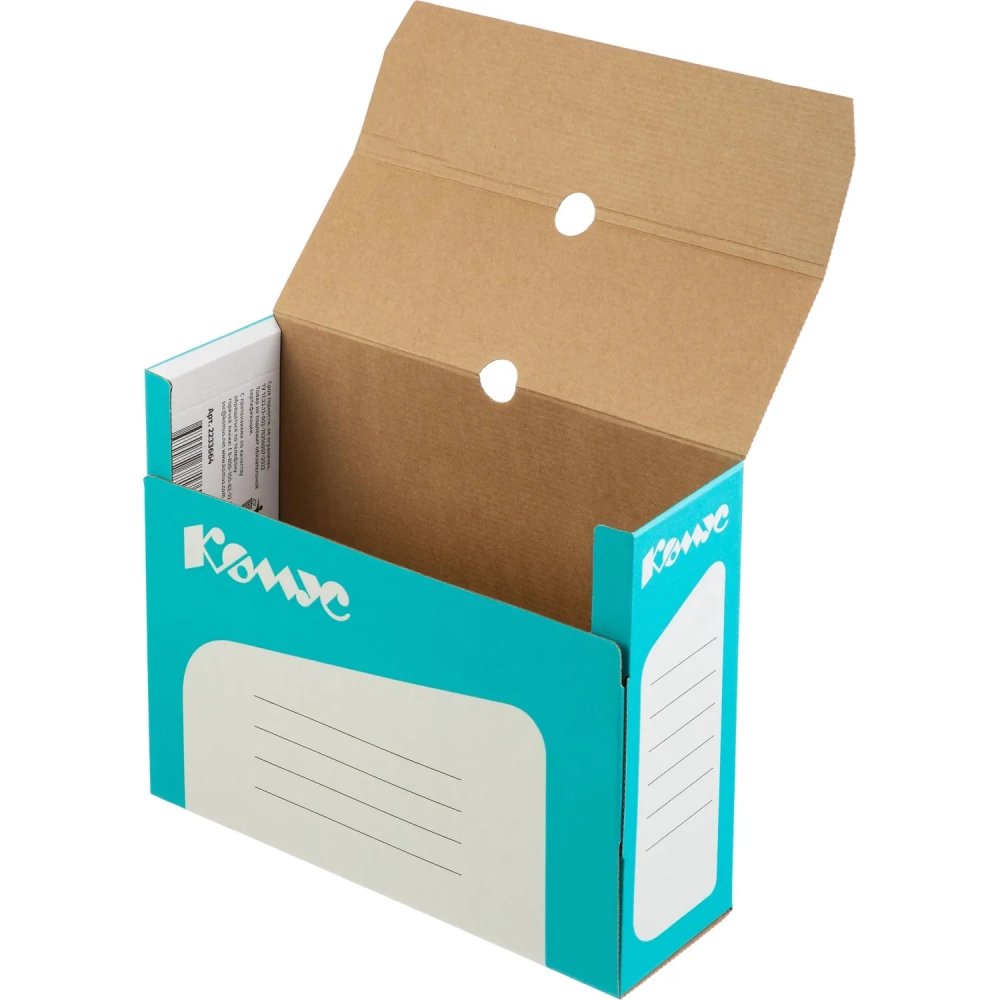 Короб архивный Комус 100 мм микрогофр, выруб.зам. бирюзовый