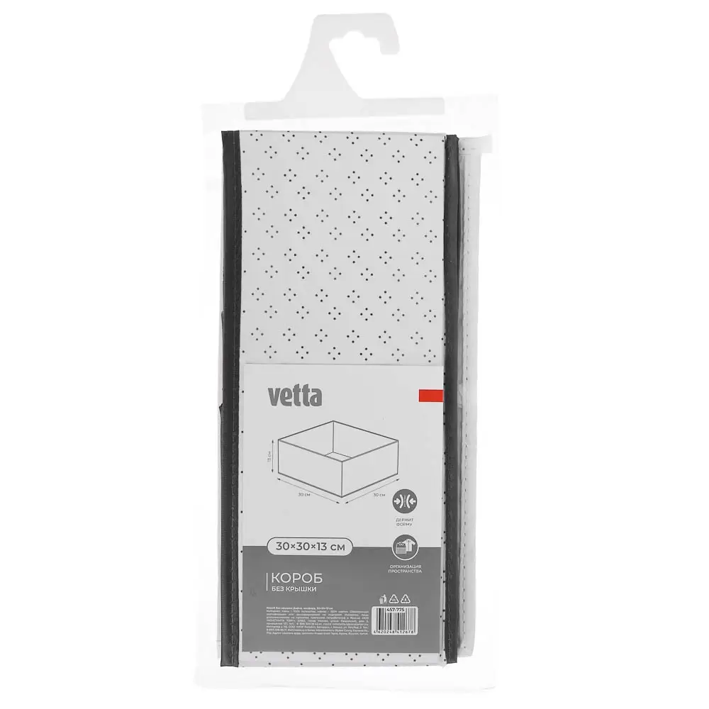 Короб VETTA «Дафна» — это универсальный и практичный аксессуар для хранения различных предметов. Он выполнен из качественного и прочного материала оксфорд, который обеспечивает надёжность и долговечность изделия. Короб имеет квадратную форму и размеры 30x30x13 см, что позволяет использовать его для хранения одежды, обуви, аксессуаров, документов и многого другого. Благодаря своей вместительности и удобной конструкции, он станет незаменимым помощником в вашем доме или офисе. Стильный и современный дизайн короба VETTA «Дафна» с чёрно-белым рисунком в горошек добавит изысканности и шарма любому интерьеру. Он прекрасно впишется в любой стиль оформления комнаты и будет гармонично сочетаться с другими элементами декора. Короб VETTA «Дафна» прост в уходе и обслуживании. При необходимости его можно легко очистить от загрязнений с помощью влажной тряпки или губки. Это делает его идеальным выбором для повседневного использования.