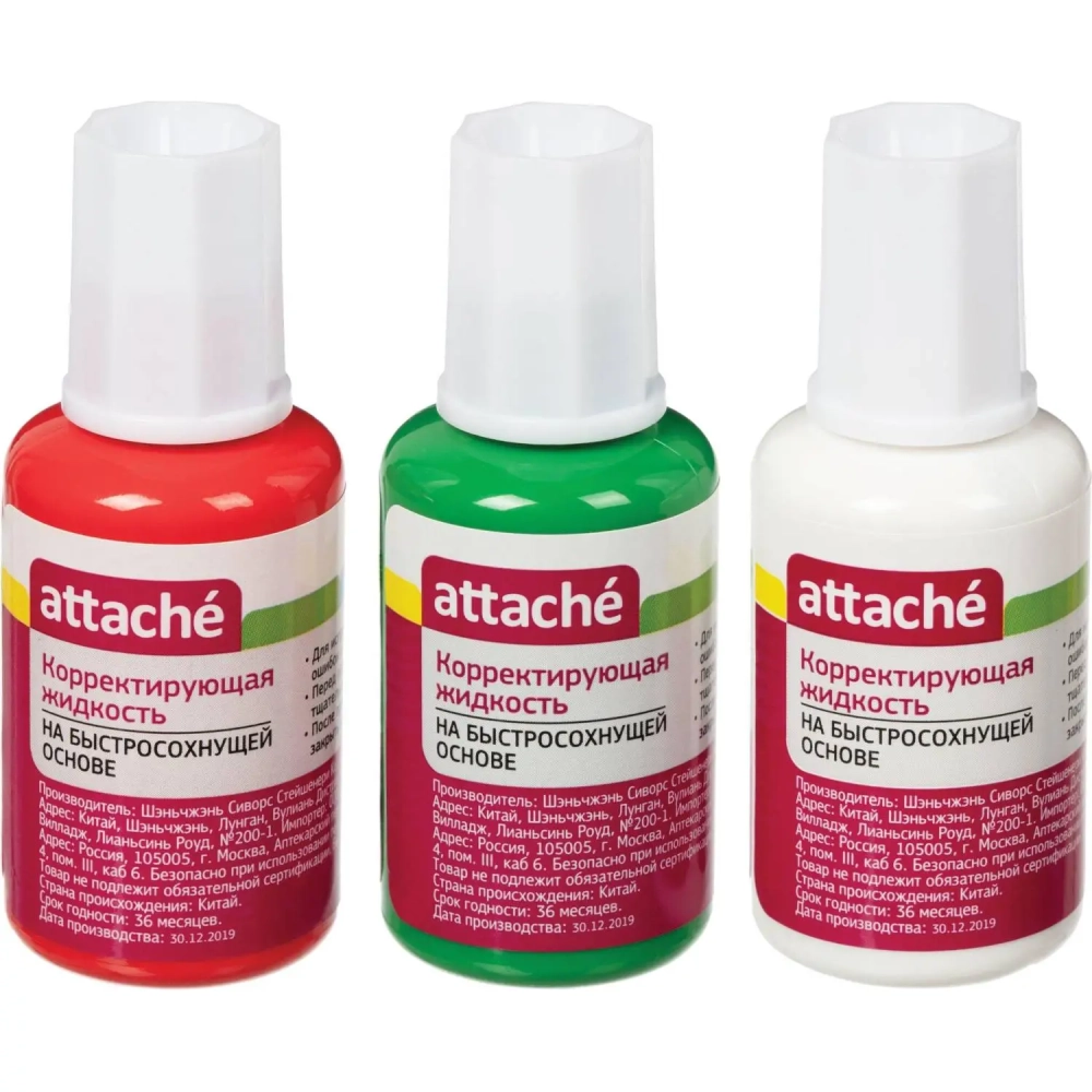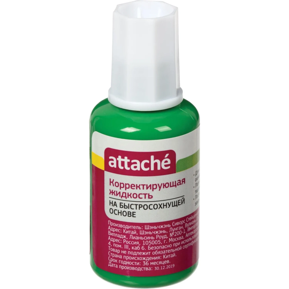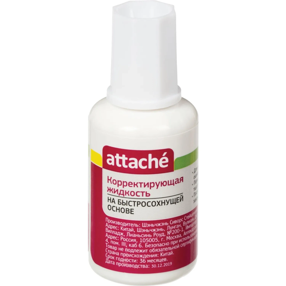 Корректирующая жидкость Attache 20мл, на быстросохнущей основе, губка