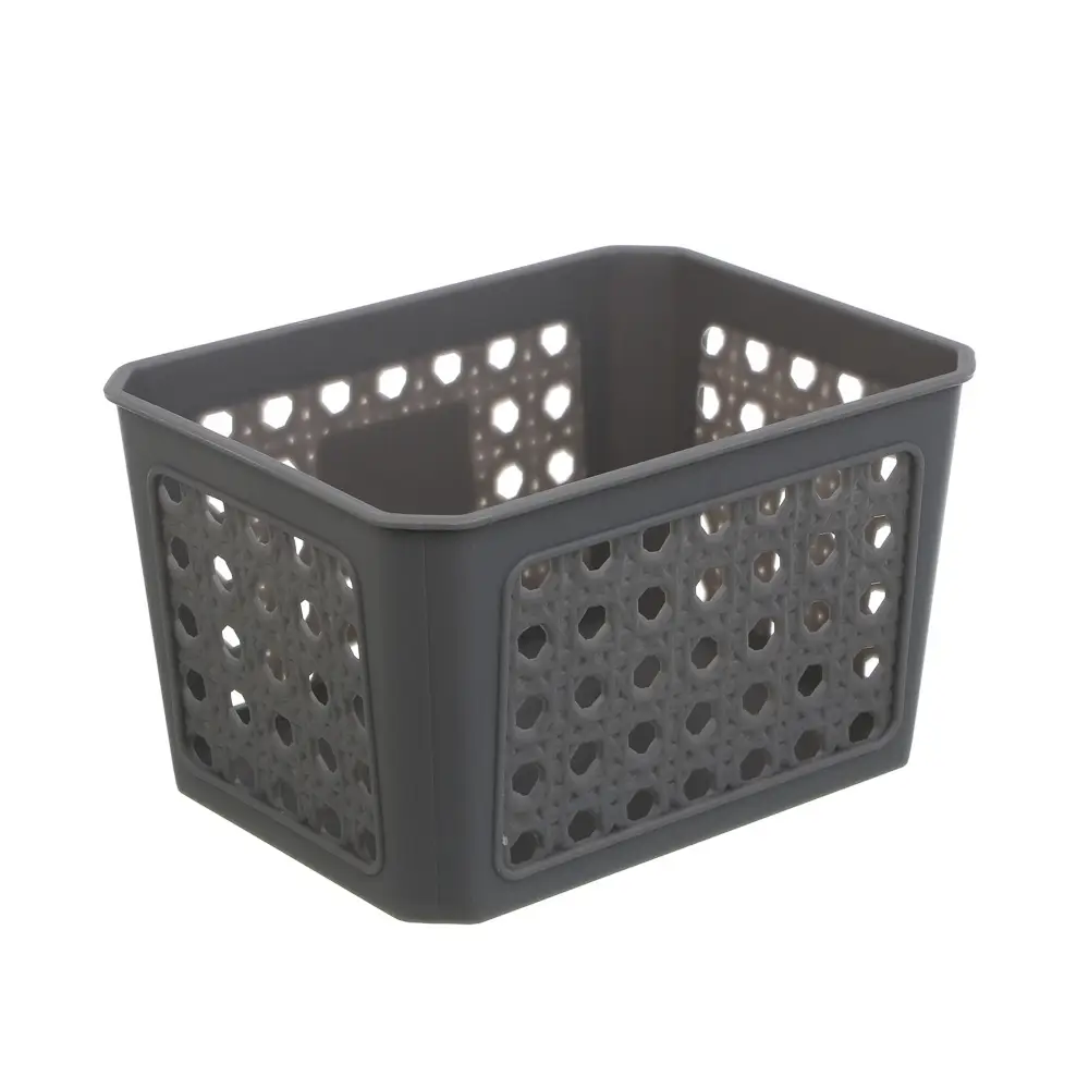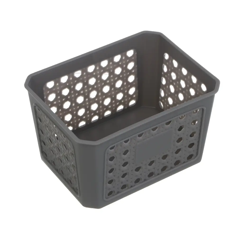 Стильная корзина VETTA – практичное решение для организации пространства в любом помещении! Благодаря компактным размерам 16х12х9 см она идеально подходит для хранения различных мелочей, не занимая много места. Современный дизайн в сером цвете гармонично впишется в любой интерьер, а перфорированные отверстия обеспечат отличную вентиляцию содержимого. Пластиковый материал гарантирует долговечность и лёгкость в уходе. Прочная конструкция корзины позволяет надёжно удерживать вещи, а специальная форма обеспечивает устойчивость при наполнении.