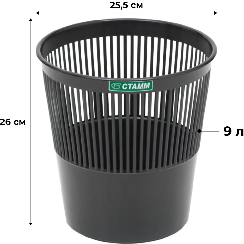 Корзина для мусора офисная 9л пластик, черная СТАММ КР21
