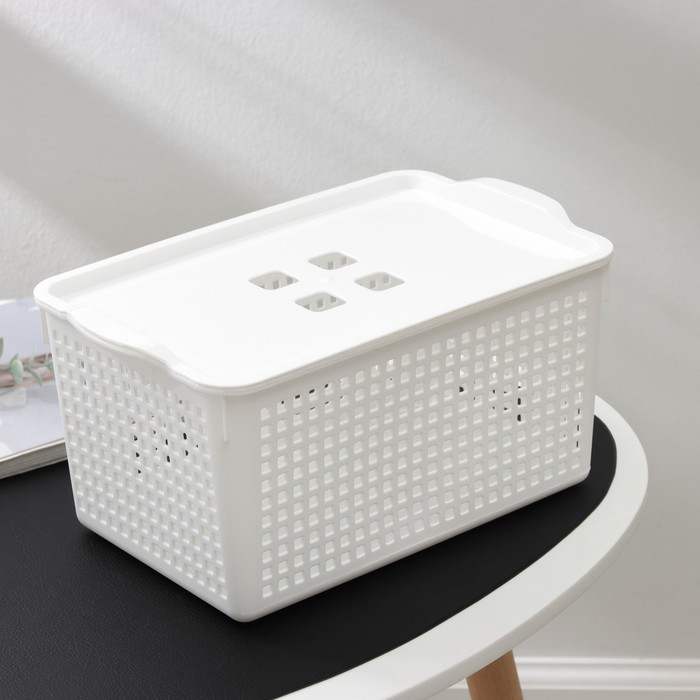Корзина для хранения с крышкой «Лофт», 5,3 л, цвет белый