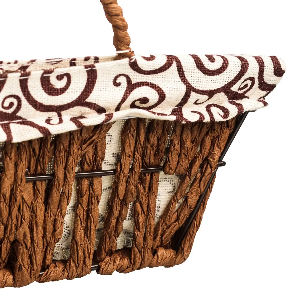 Плетеная декоративная корзина с ручками с металлическим корпусом удобна для использования в шкафах, на столе или в ванной комнате для различных мелочей. Также корзина отлично впишется в хранение на кухне, подойдет для фруктов и хлебобулочных изделий. Станет отличным дополнением к дизайну любой комнаты, добавляя комфорт и уют помещению.