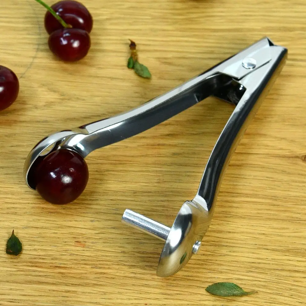 Любителям заготовок, ягодных десертов, джемов и компотов приходится сталкиваться с обработкой ягод, ведь их нужно помыть, почистить, убрать косточку и т.д. Если объем продуктов большой, такая работа покажется монотонной и рутинной. Сократить время на чистку ягод поможет специальный косточковыдавливатель, который одним движением удаляет косточку из вишни, черешни, оливок. Инструмент напоминает щипцы, на одной части расположен стержень, на другой отверстие, через которое выпадает косточка. Простота и надежность конструкции позволит быстро очистить ягоду с минимальным повреждением мякоти и без потери сока. Изготовлен из стали с хромированным покрытием.