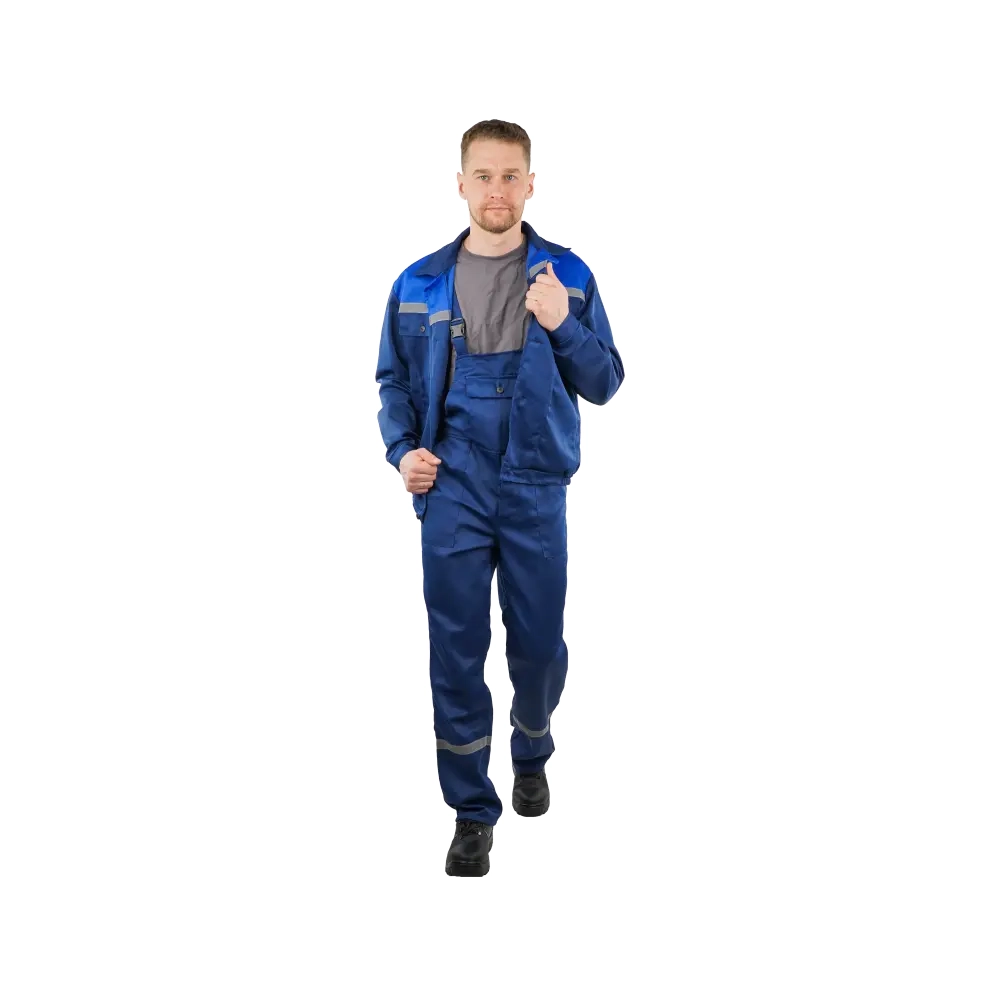 Костюм нашел применение среди специалистов всех рабочих профессий, работников ИТР. Такая спецодежда обеспечивает защитой от загрязнений, истирания, характеризуется удобством при ношении, легко чистится. Данный костюм Техник - укороченная куртка и полукомбинезон прямого кроя. Полукомбинезон застегивается на пуговицы, имеет усилительные накладки, снабжен карманами и отделкой контрастными строчками. Куртка с отложным воротником.