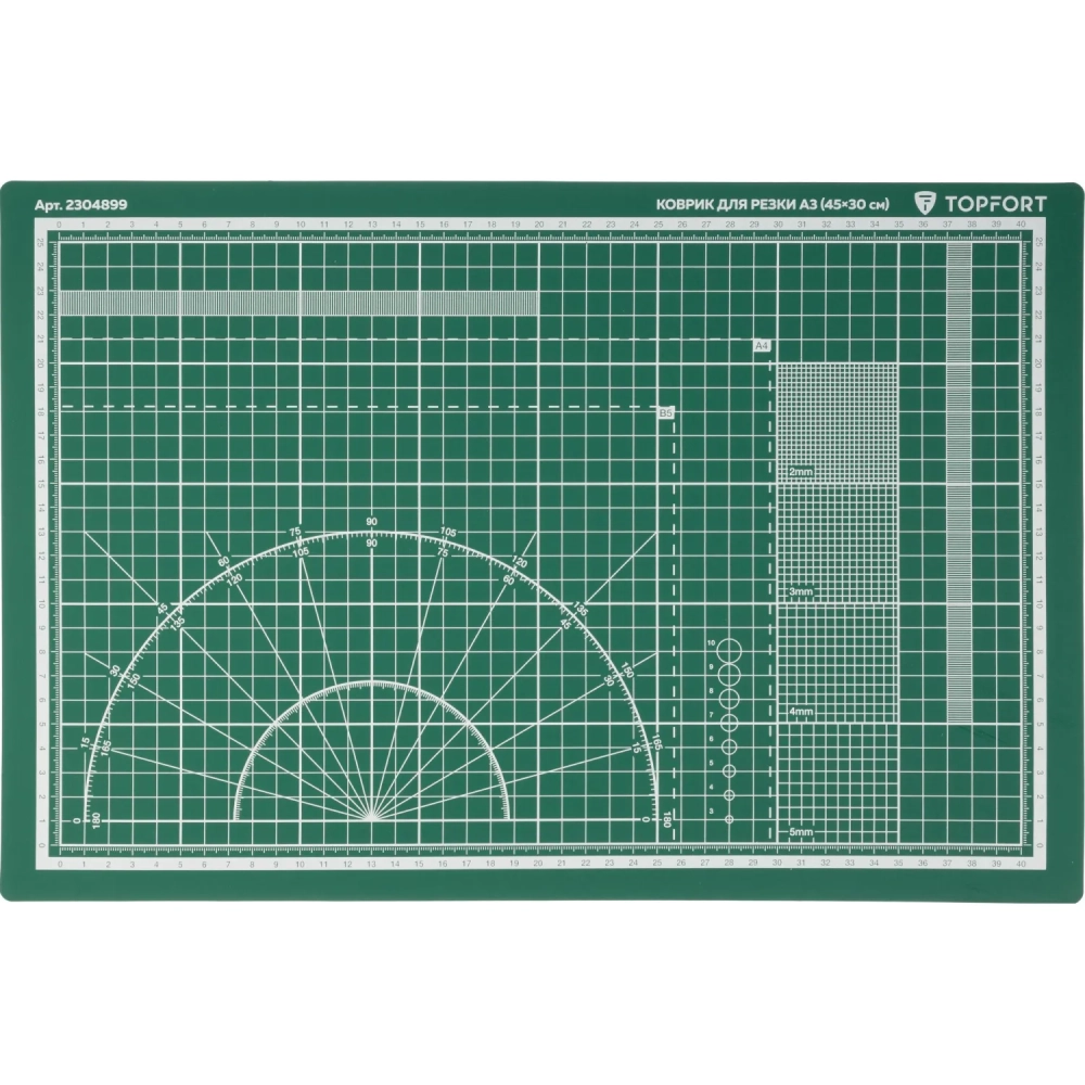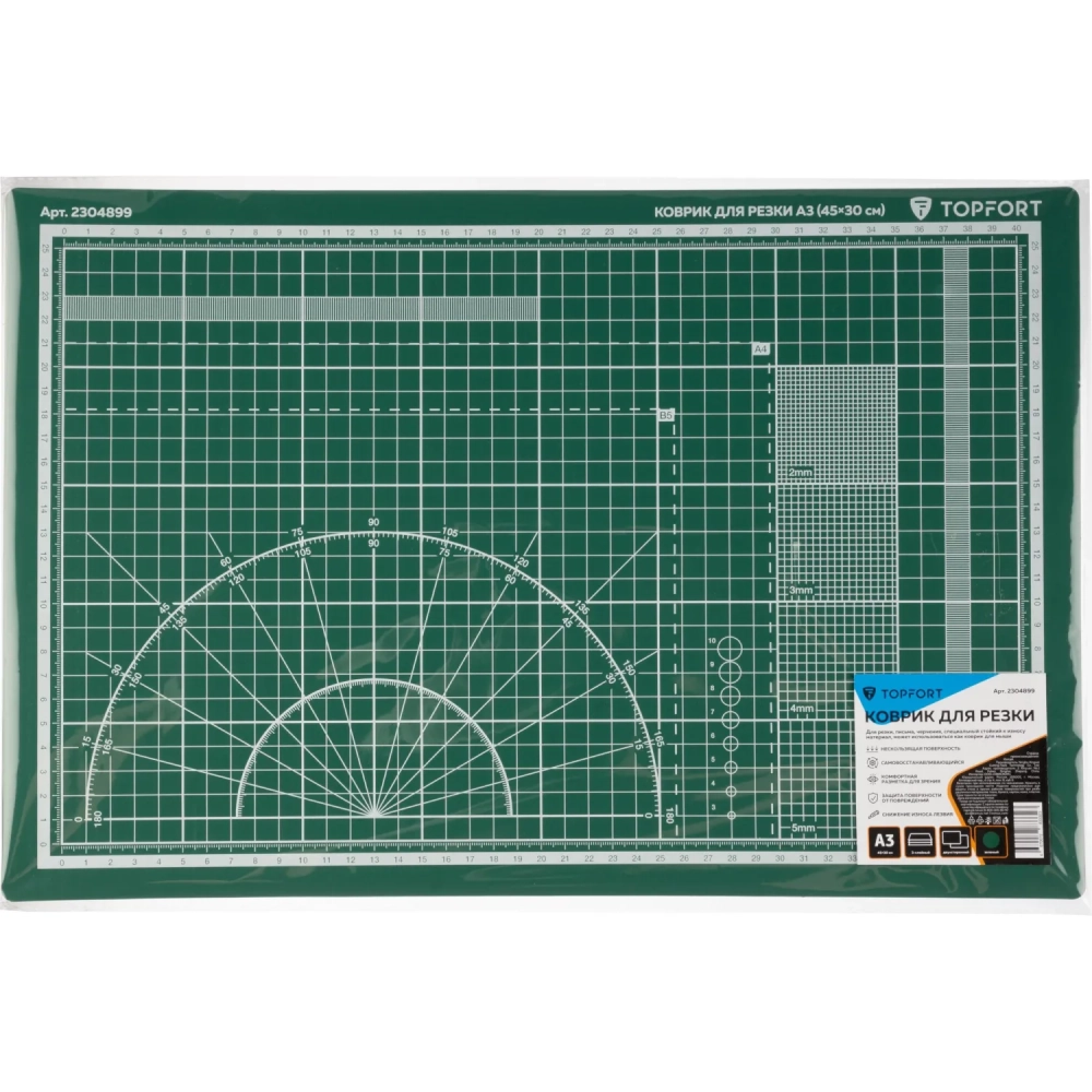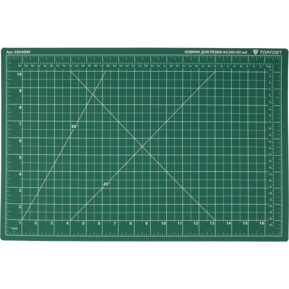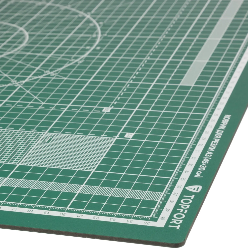 Коврик для резки Topfort 3х-слойный А3 (45х30см), 2х-сторонний, зеленый