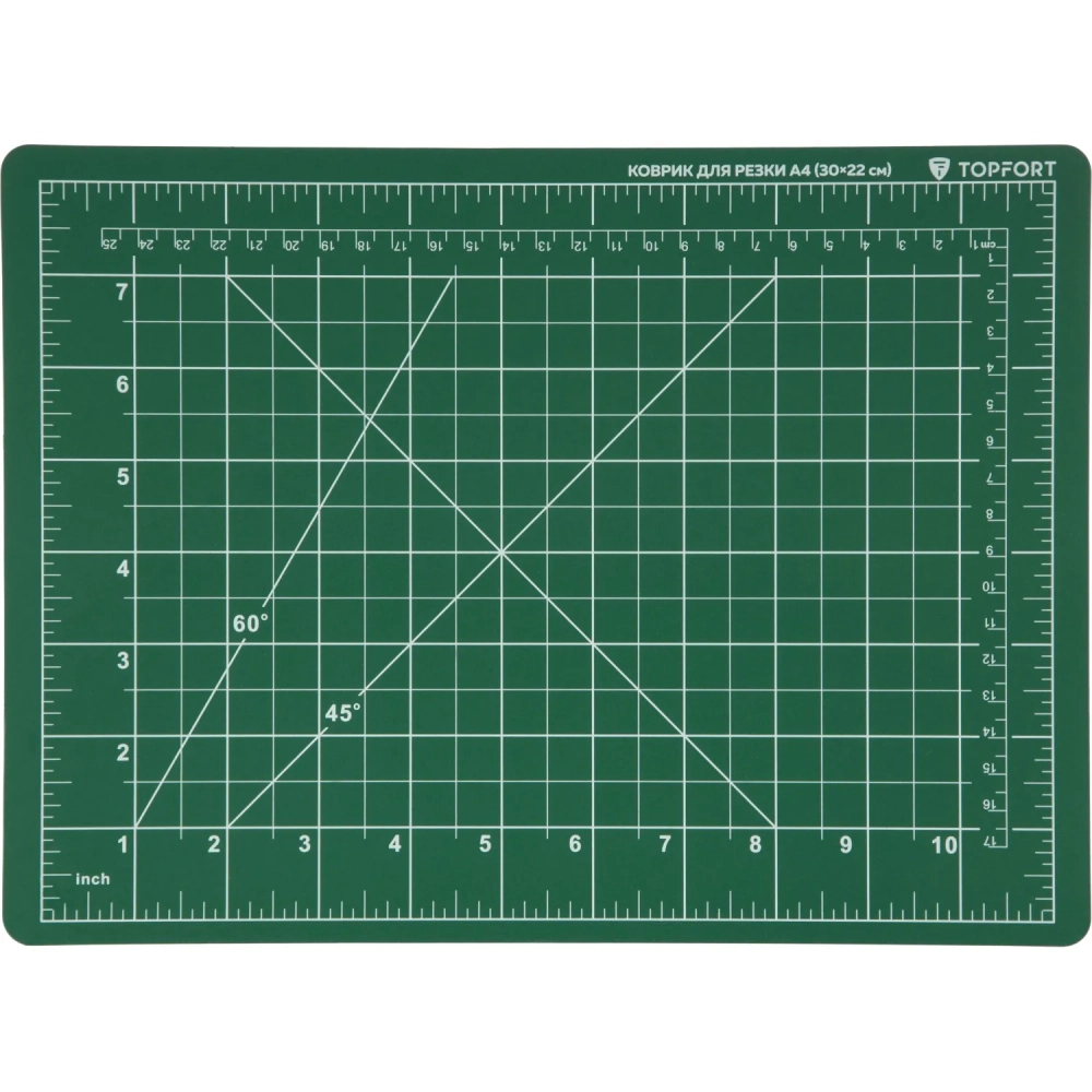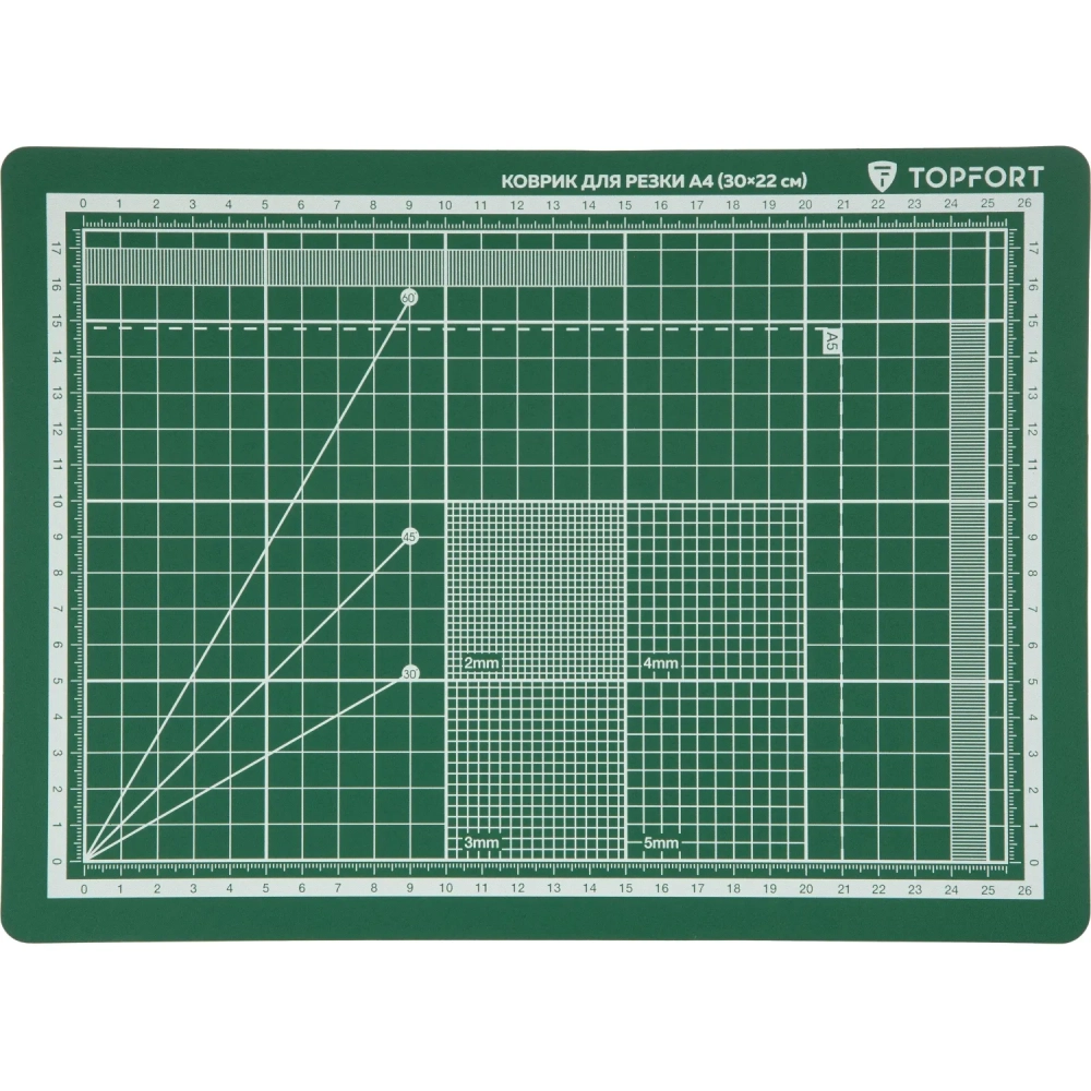 Коврик для резки Topfort 3х-слойный А4 (30х22см),2х-сторонний,зеленый