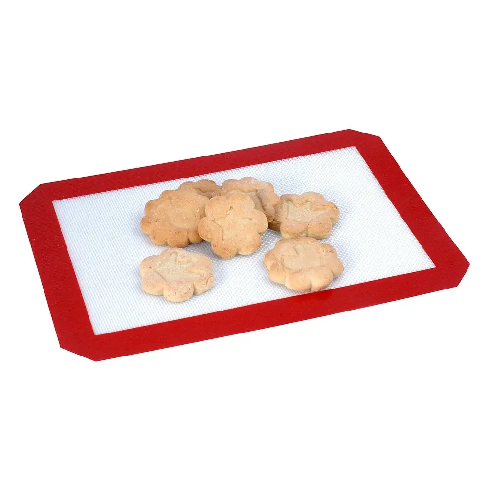 Для удобства раскатывания теста, для запекания и приготовления пищи в духовке используйте силиконовый антипригарный коврик. Преимущества материала: гигиеничный, безопасный, выдерживает высокие температуры до 220 градусов, к силикону не пристает тесто во время раскатки и пища после запекания. Такой коврик для выпечки и раскатки теста обеспечивает равномерное распределение температуры. Изделие не рвется, не мнется, занимает мало места на кухне. Рекомендуется мыть приспособление вручную, используя мягкую губку. Не используйте для мытья грубые щетки и абразивные средства. Перед использованием также рекомендуется промыть и просушить изделие. Не режьте продукты на коврике ножом! Изготовлен из силикона, армированного стекловолокном. Размер 30х21 см.
