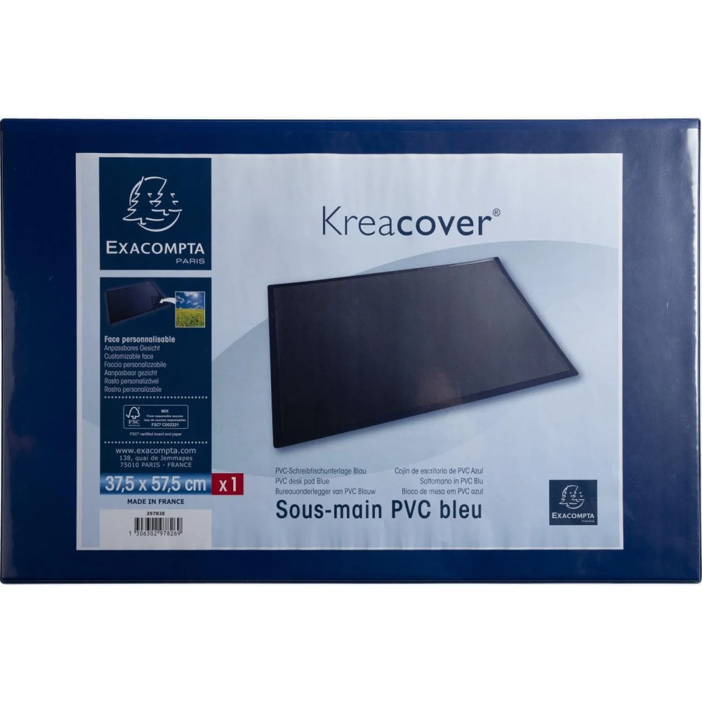 Коврик на стол Exacompta 57,5х37,5см синий с прозрачным листом 29782E