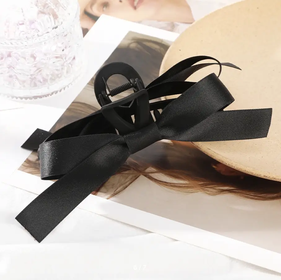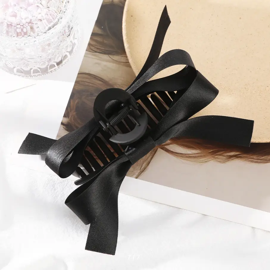 Крабик для волос с атласным бантом черный 18 см