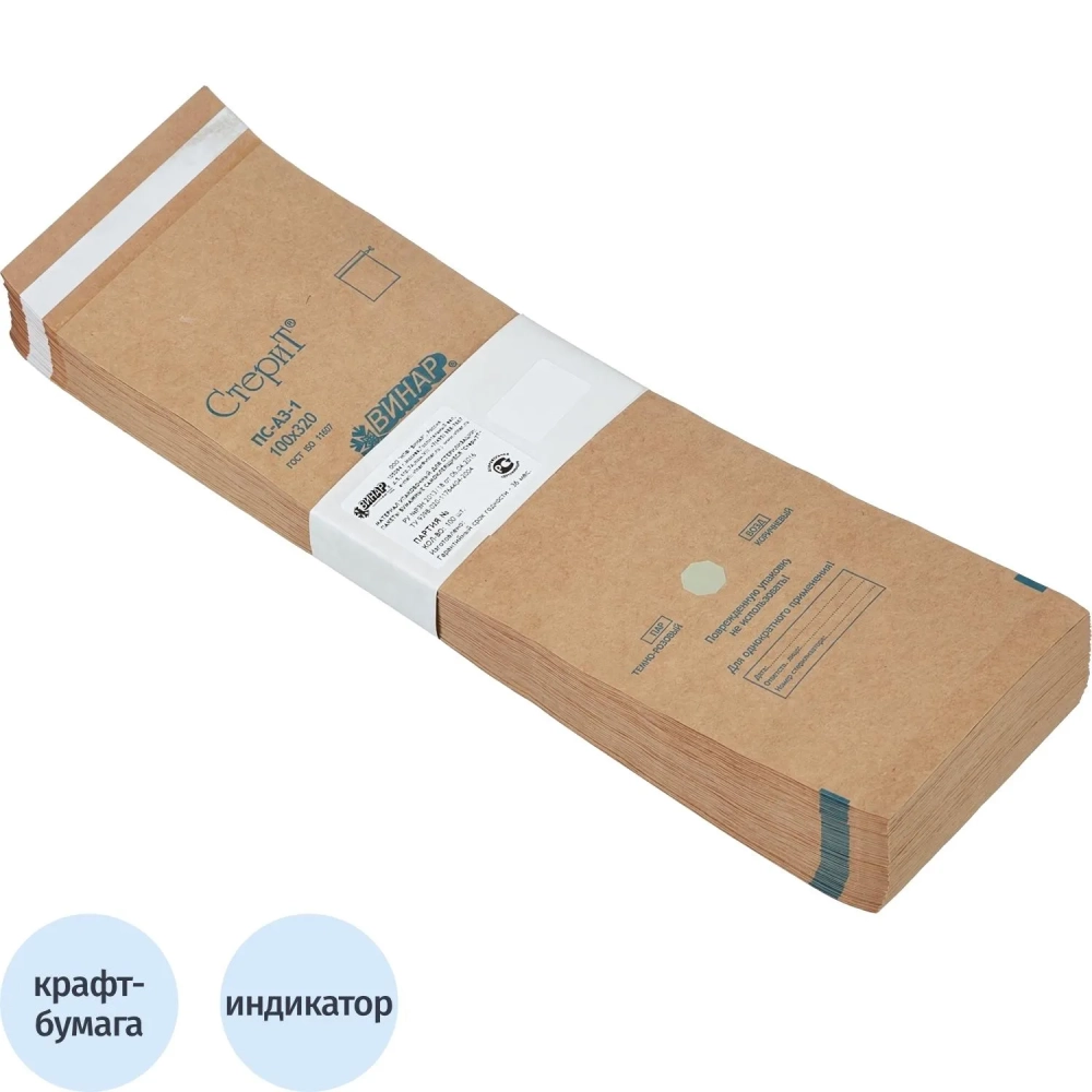 Крафт-пакет для стерилизации 100 х 320 мм самокл. 100 шт/уп СтериТ