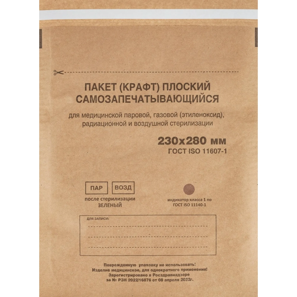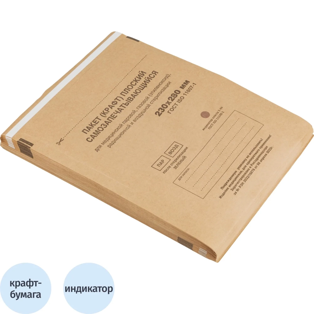 Крафт-пакет для стерилизации 230 х 280 мм самокл. 100 шт/уп Террамед