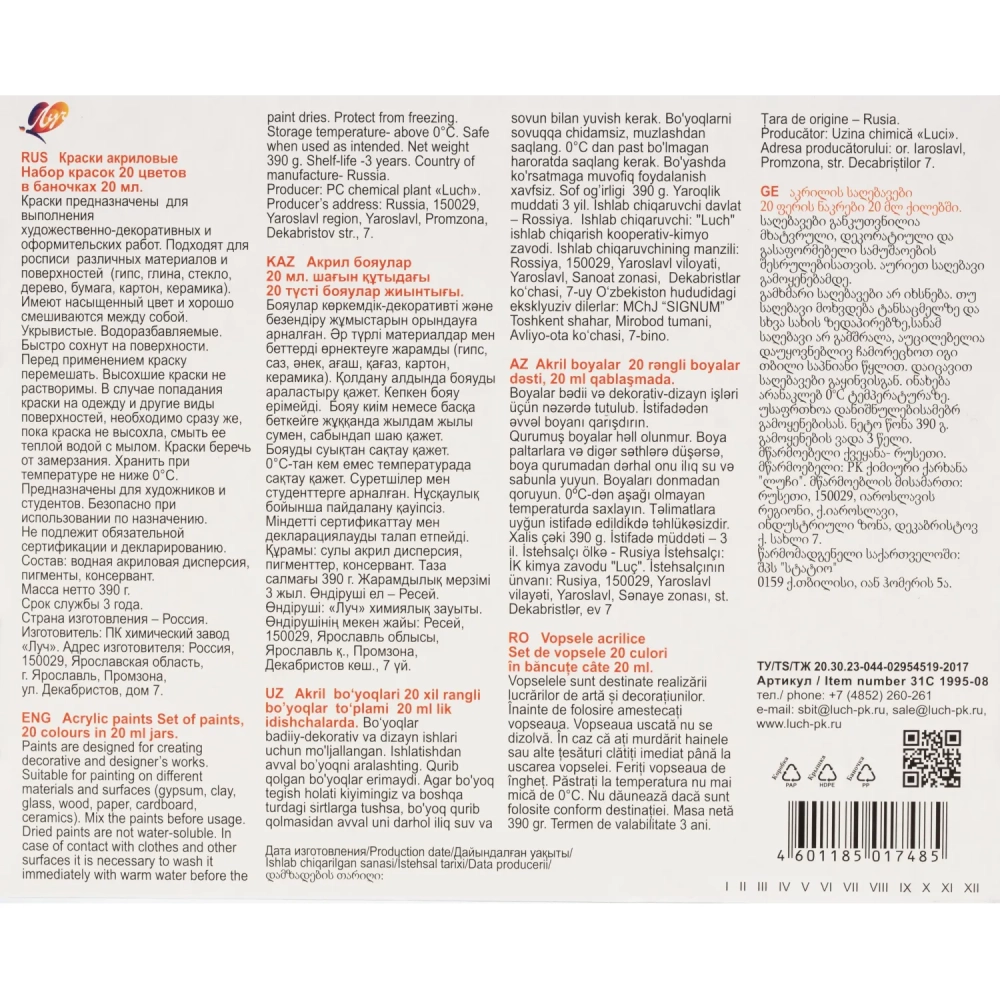 Краски акриловые художественные 20 цв. 31C 1995-08