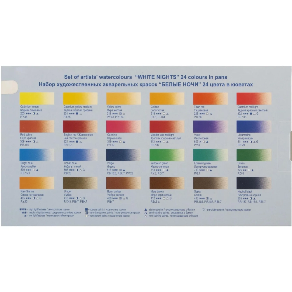 Краски акварельные Белые ночи 24цв кюветы 1942090/1941061